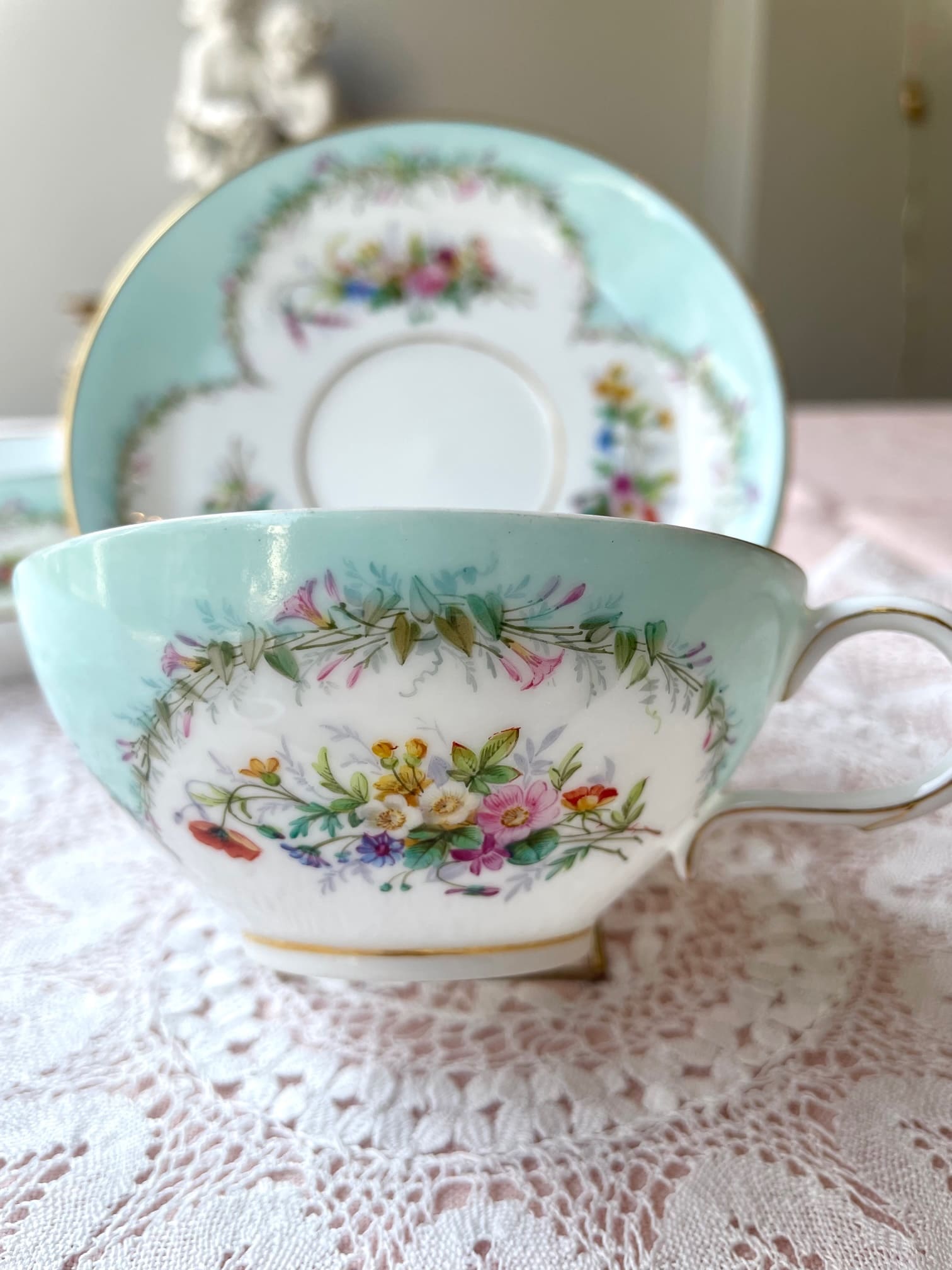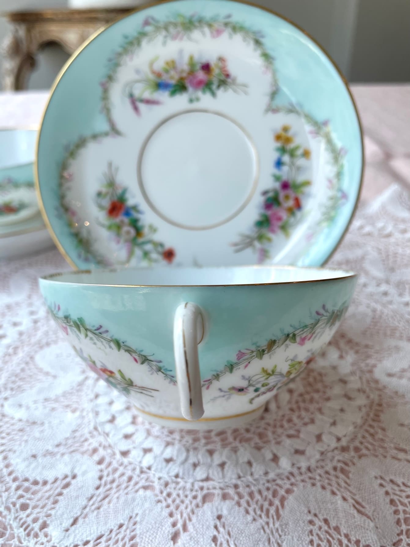 リモージュ、Jean Pouyat(ジャン・プイヤ)磁器工房の素敵なカップ&ソーサーが入荷いたしました❁.。.:*