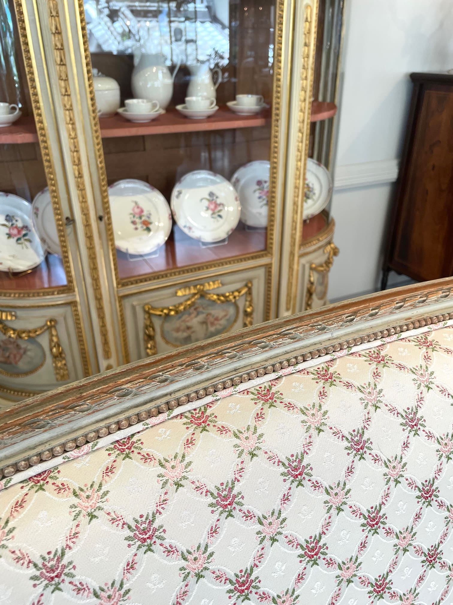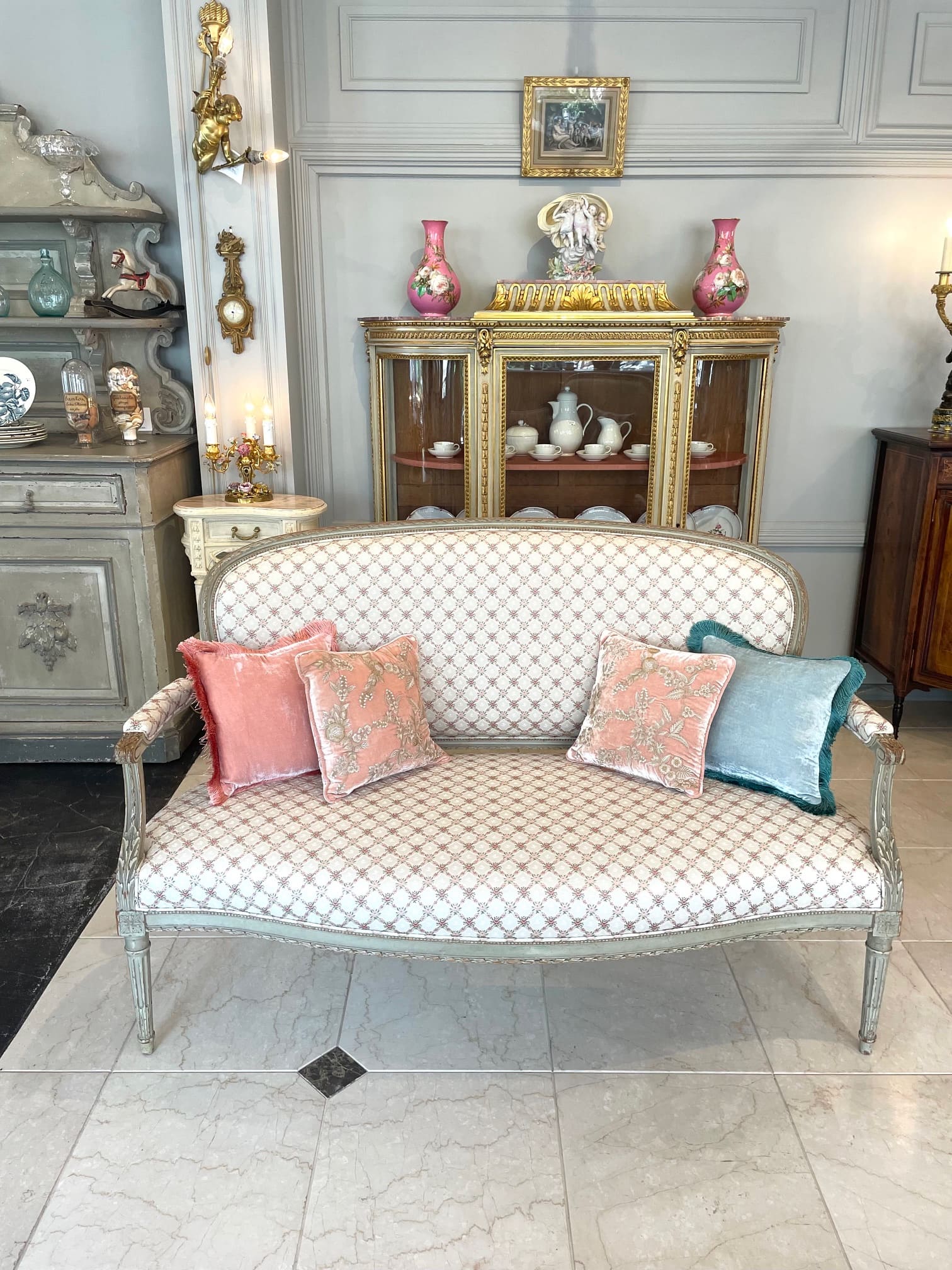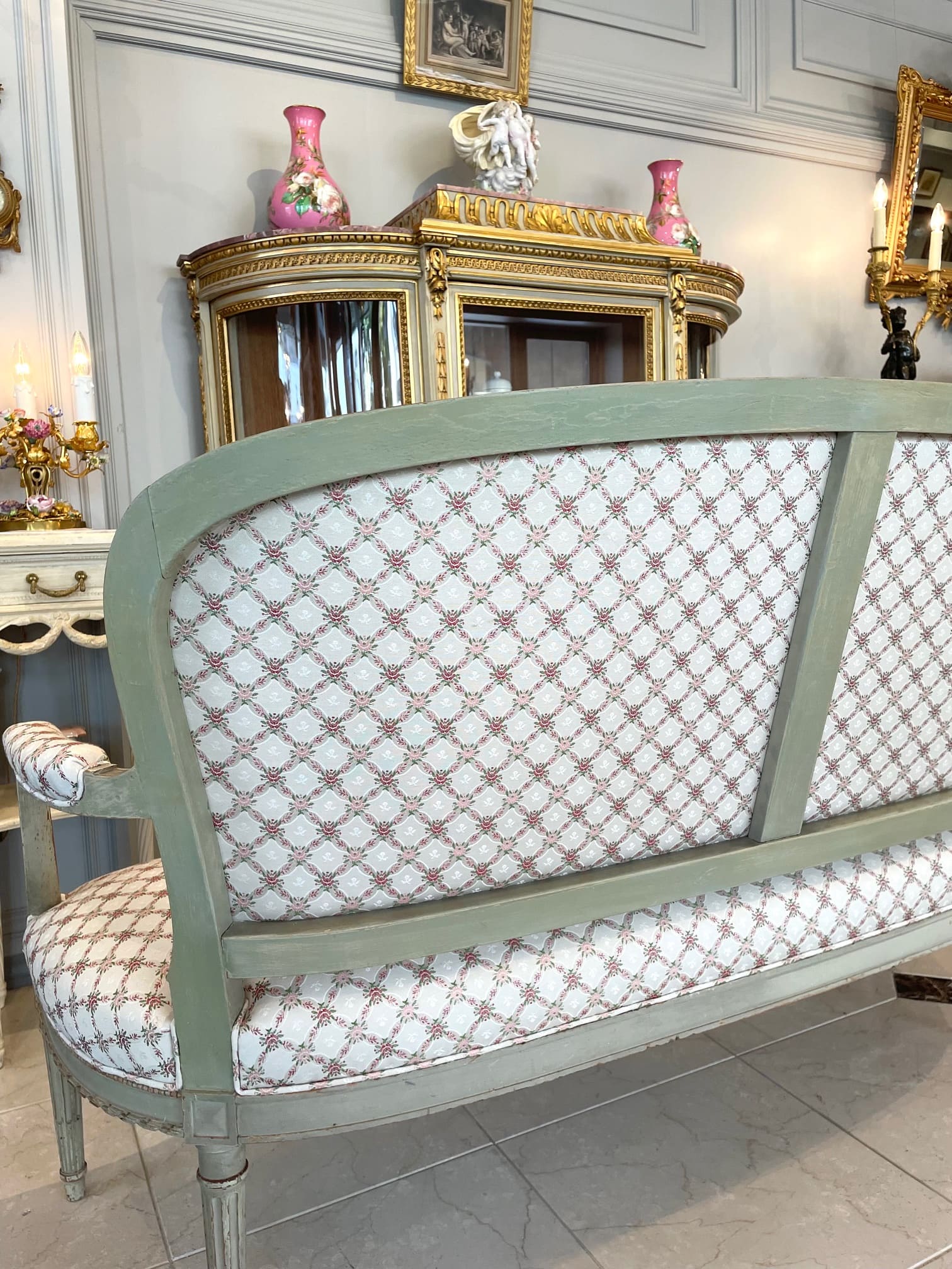フレームに、カールしたリボン、連なったパール、アーム部分にはアカンサスが彫刻された、ルイ16世スタイルの2シートソファ✧*