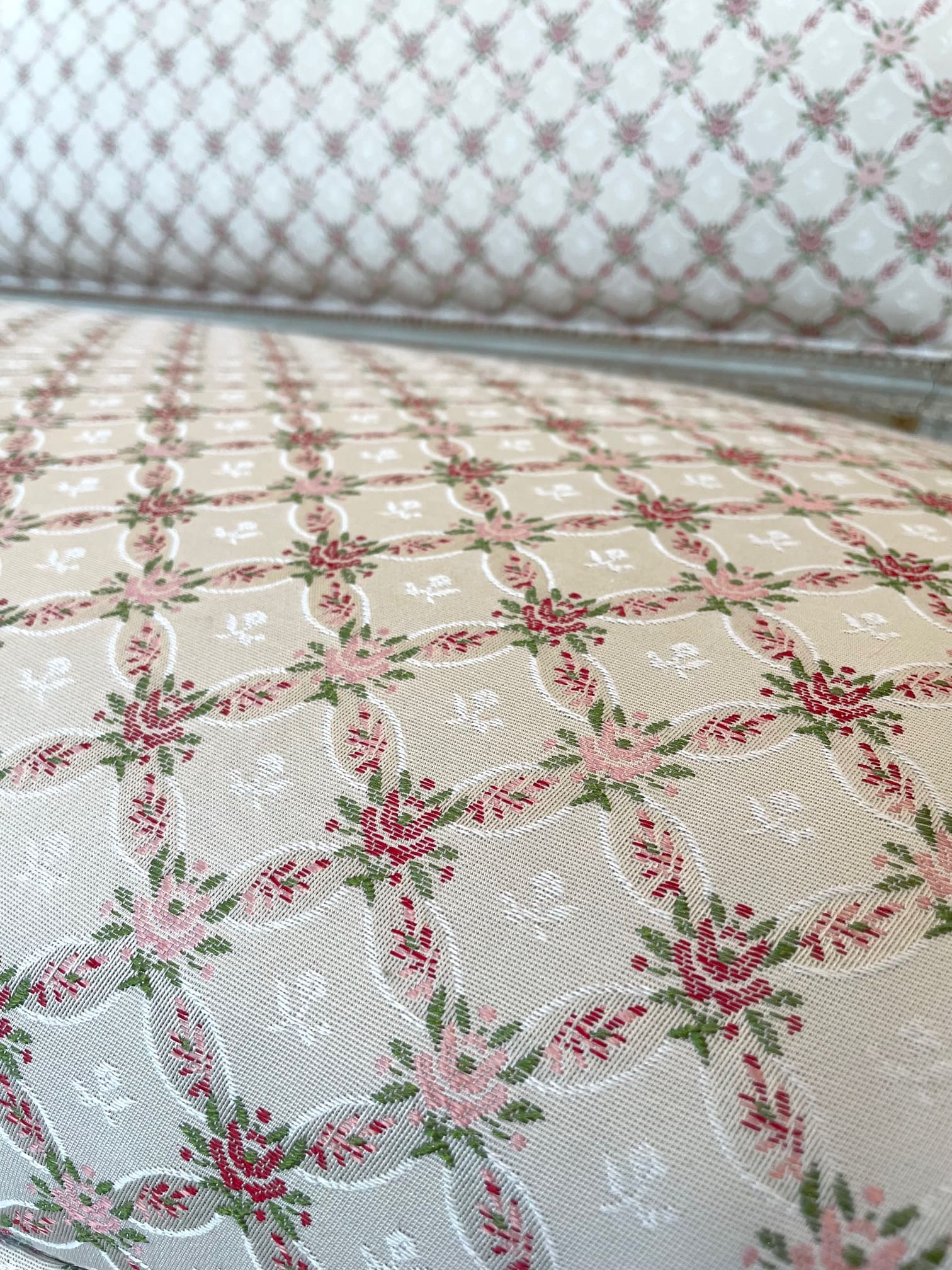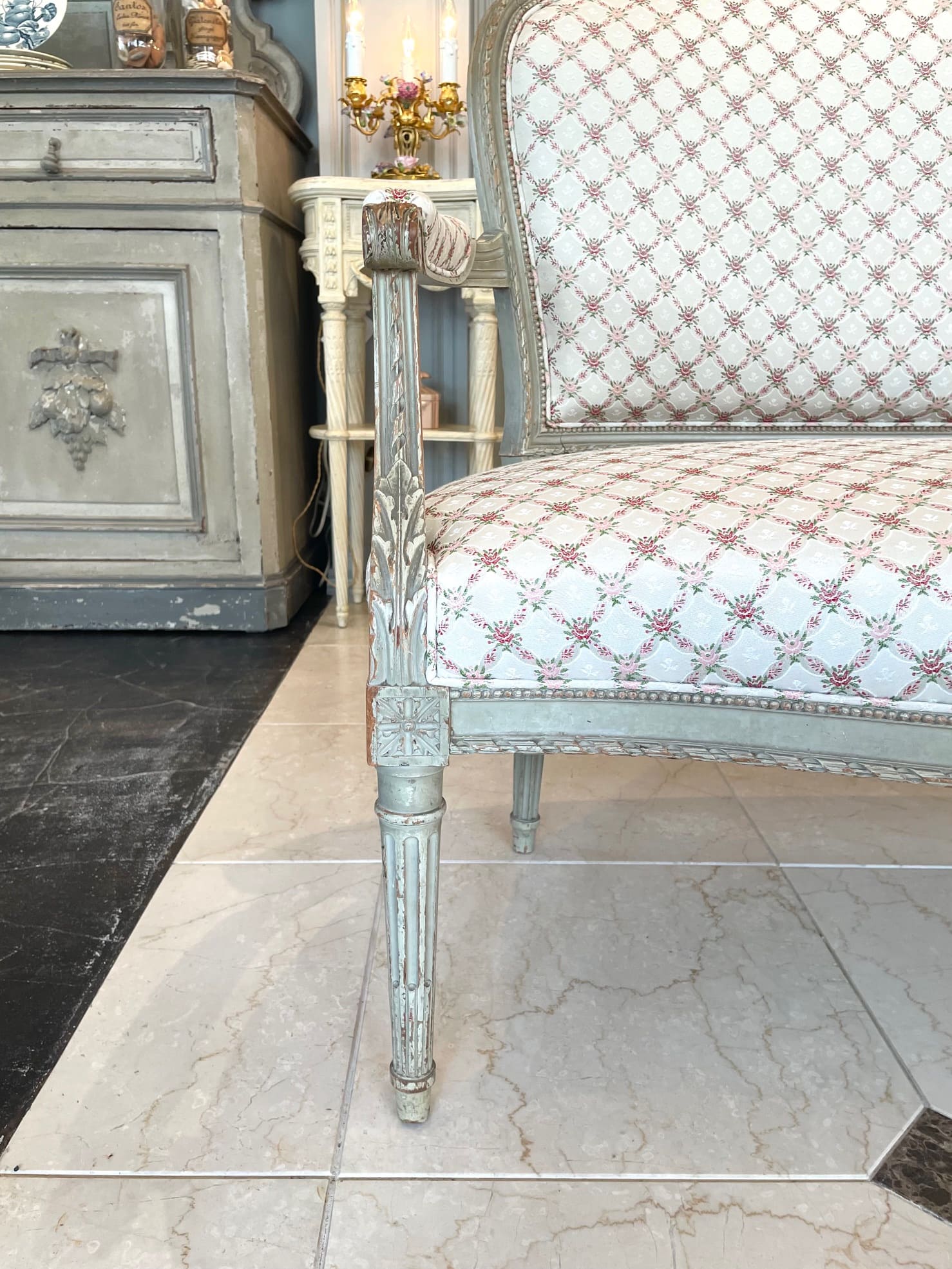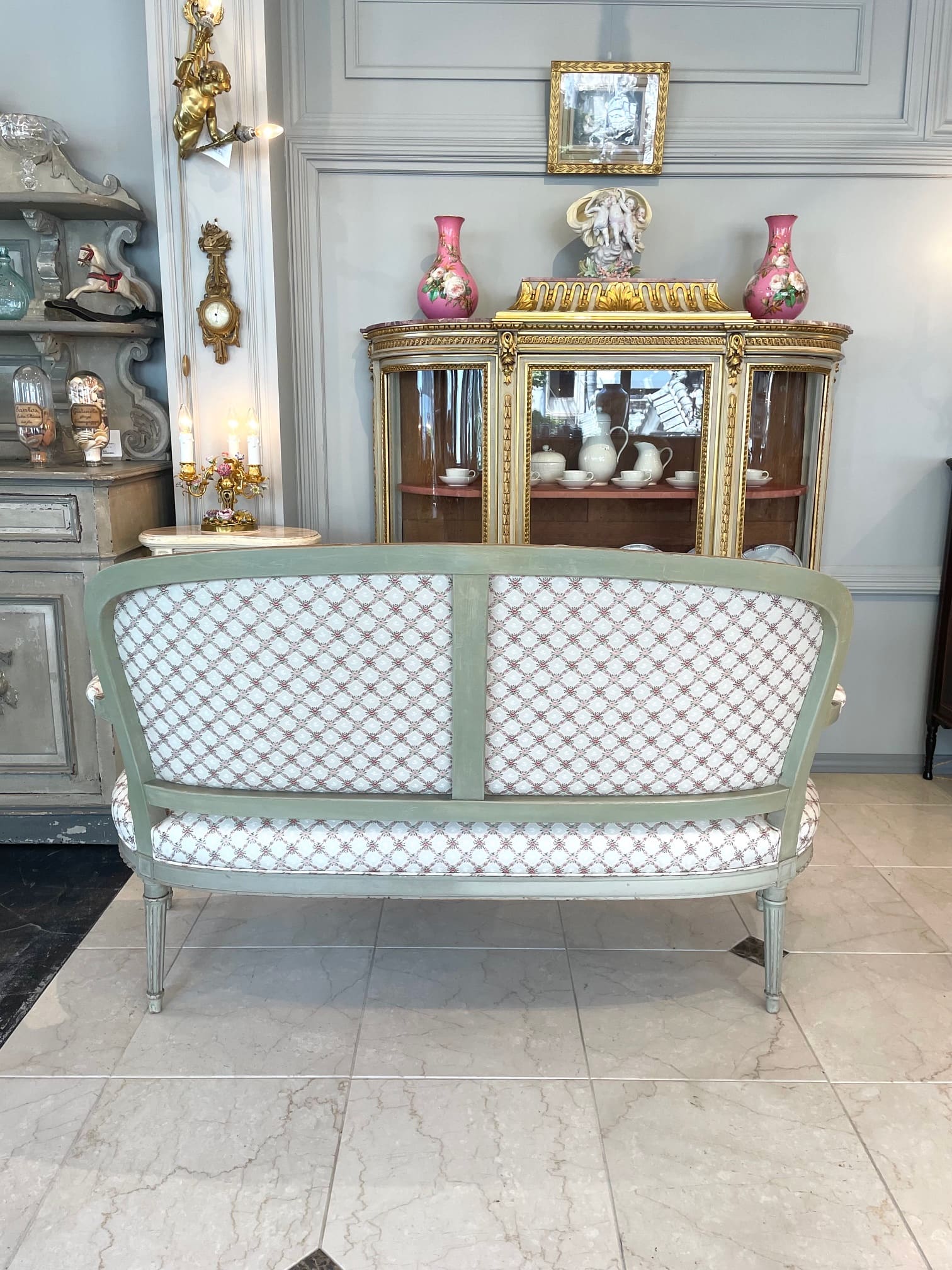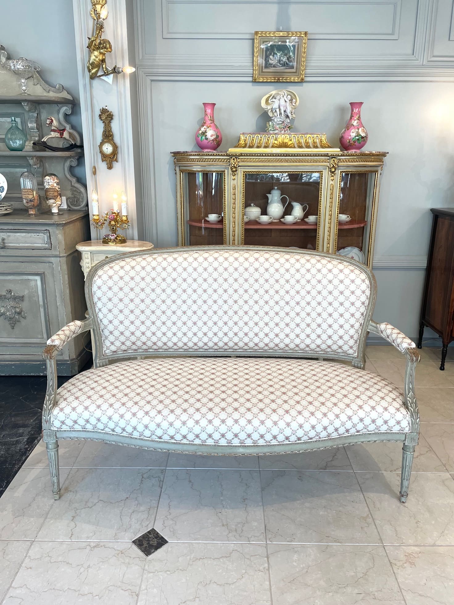フレームに、カールしたリボン、連なったパール、アーム部分にはアカンサスが彫刻された、ルイ16世スタイルの2シートソファ✧*