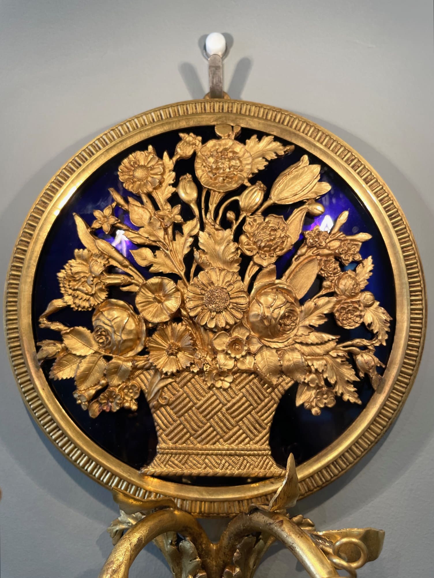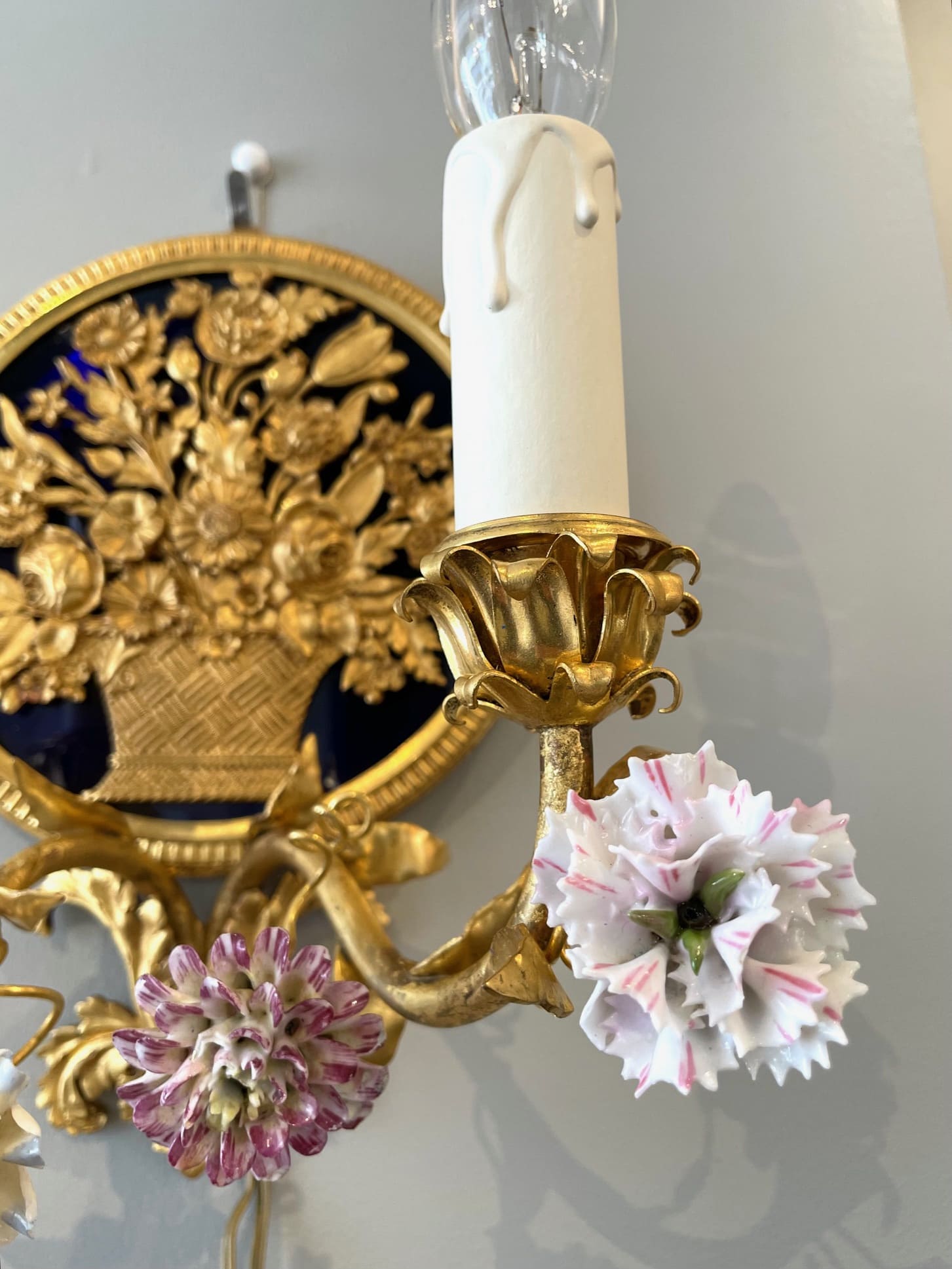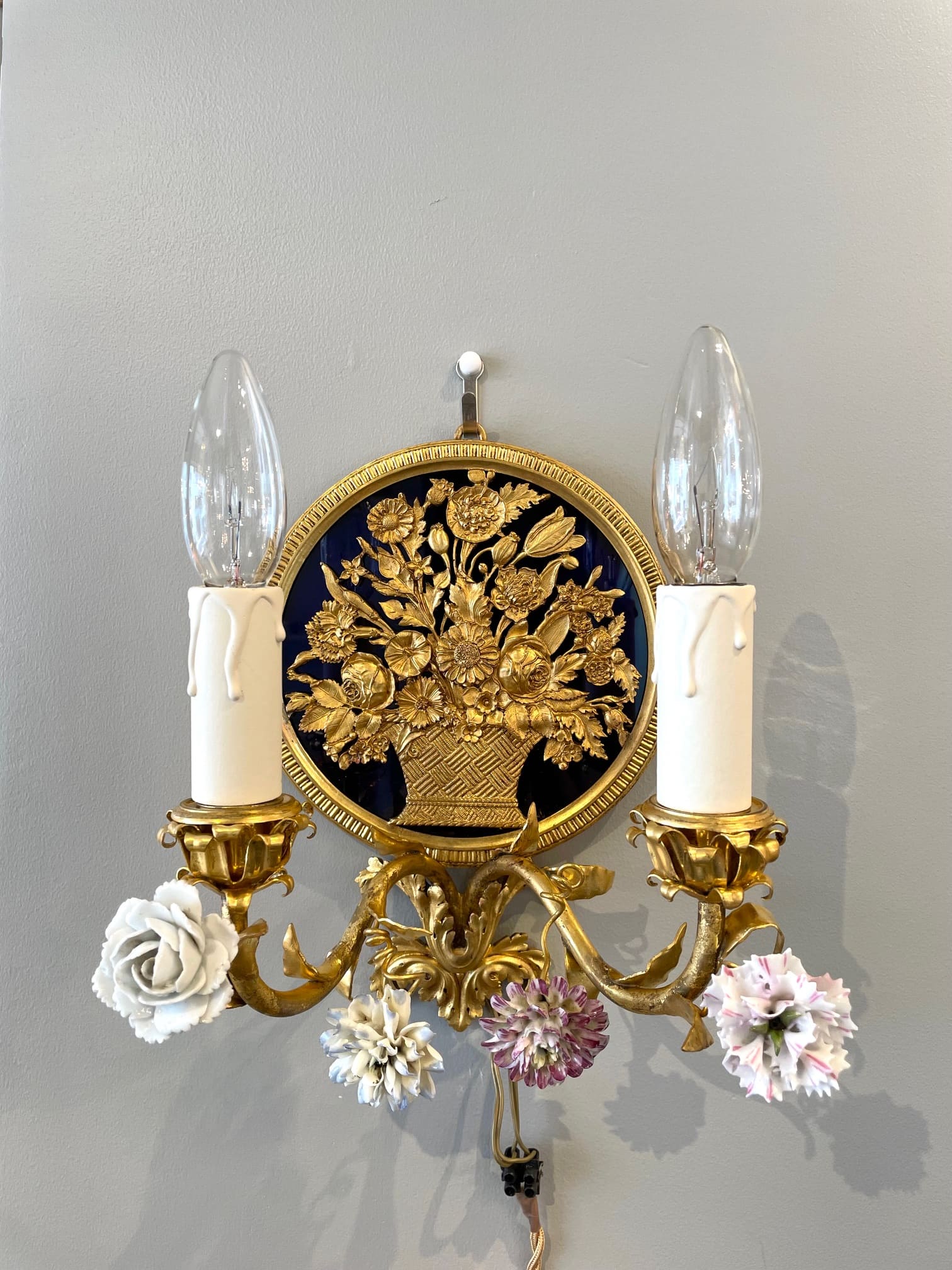 パニエ・ド・フルールの繊細なブロンズの装飾が目を引く素敵なウォールランプ・*:.。❁