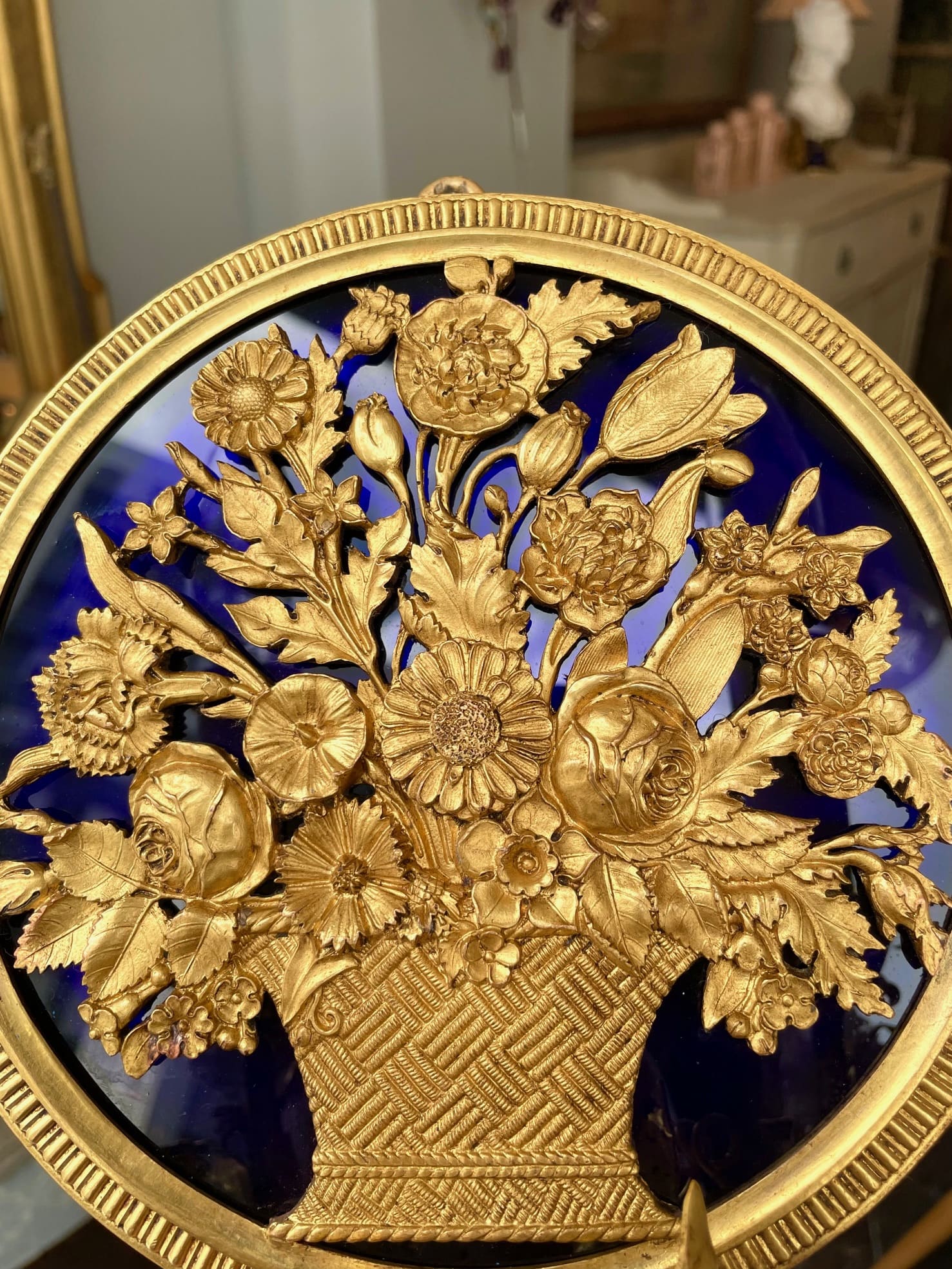 高貴なセーヴル磁器を思わせるメダリオン内のファットブルーは実は色ガラス✧