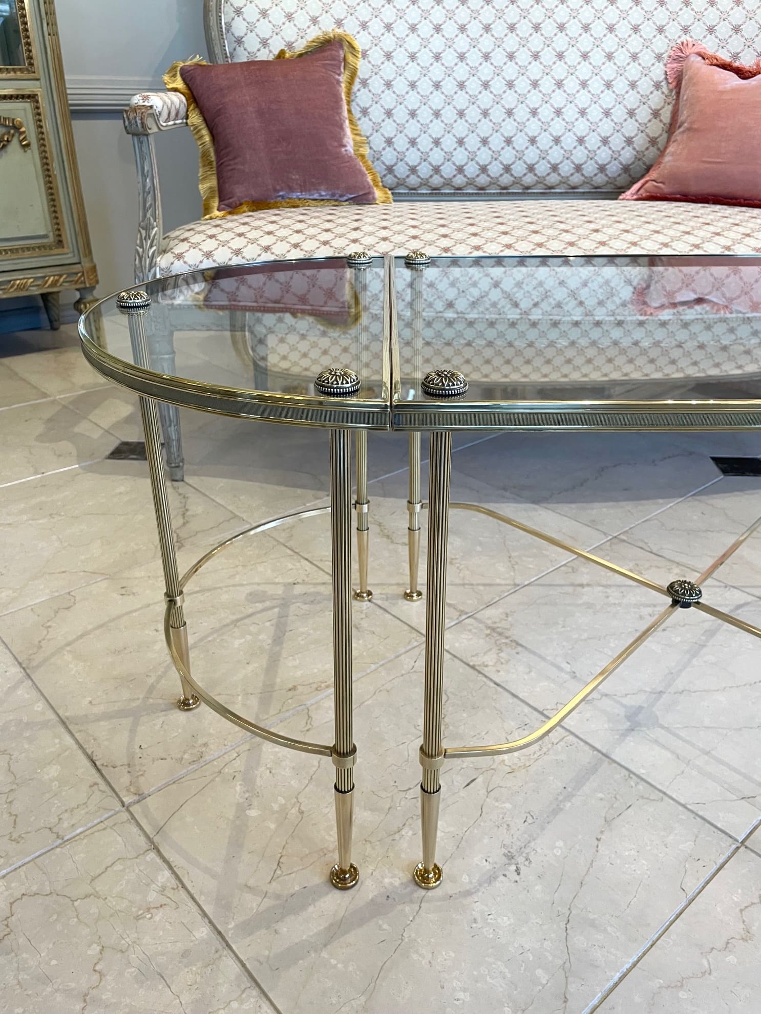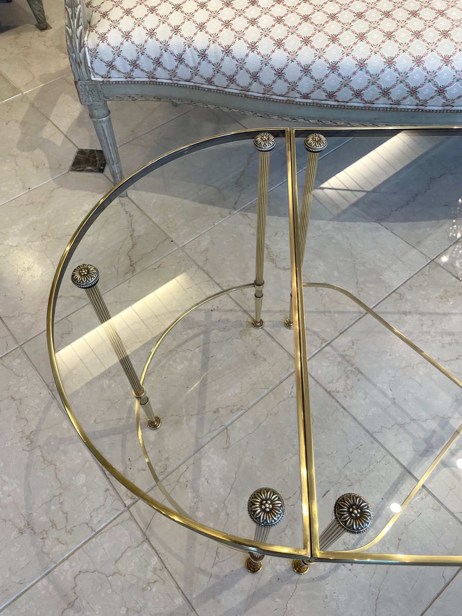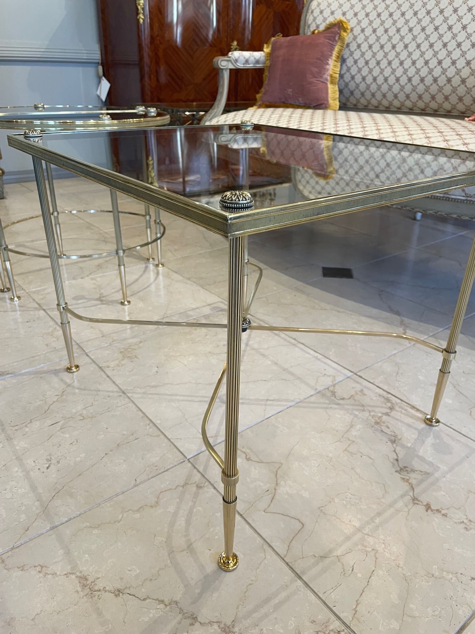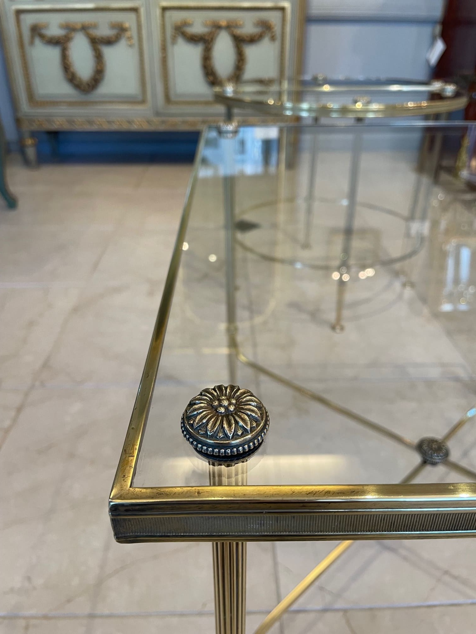 真鍮のフレームにガラスがセットされたスタイリッシュなコーヒーテーブルは、インテリアに拘りのあられる方やお洒落な方々に人気の高いメゾン・バゲスのお品物です。