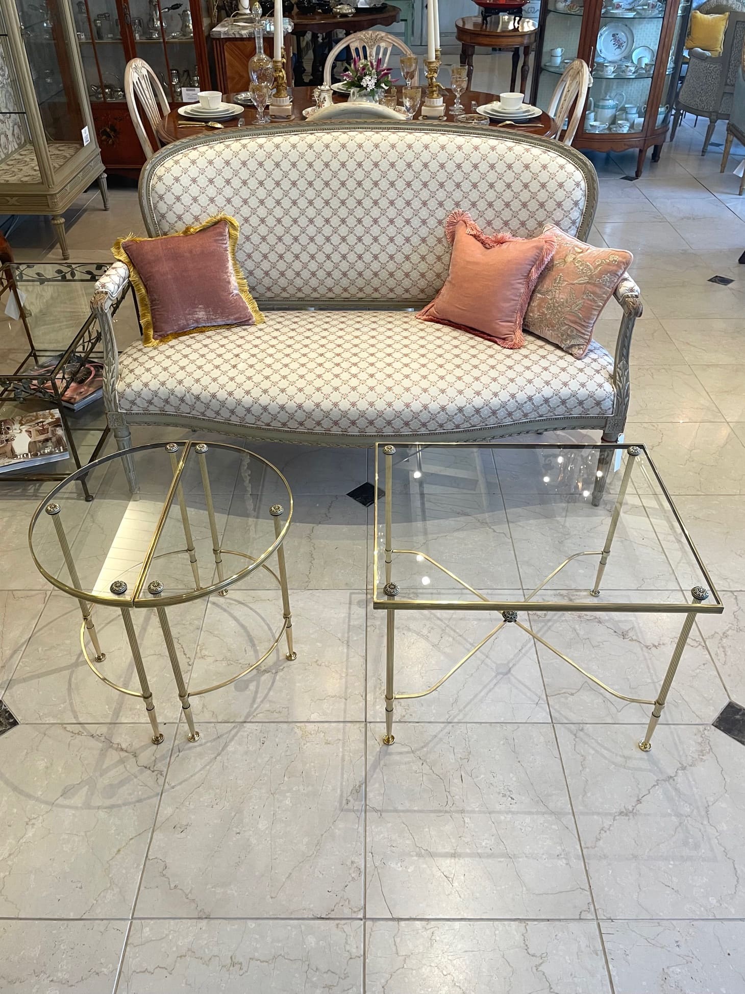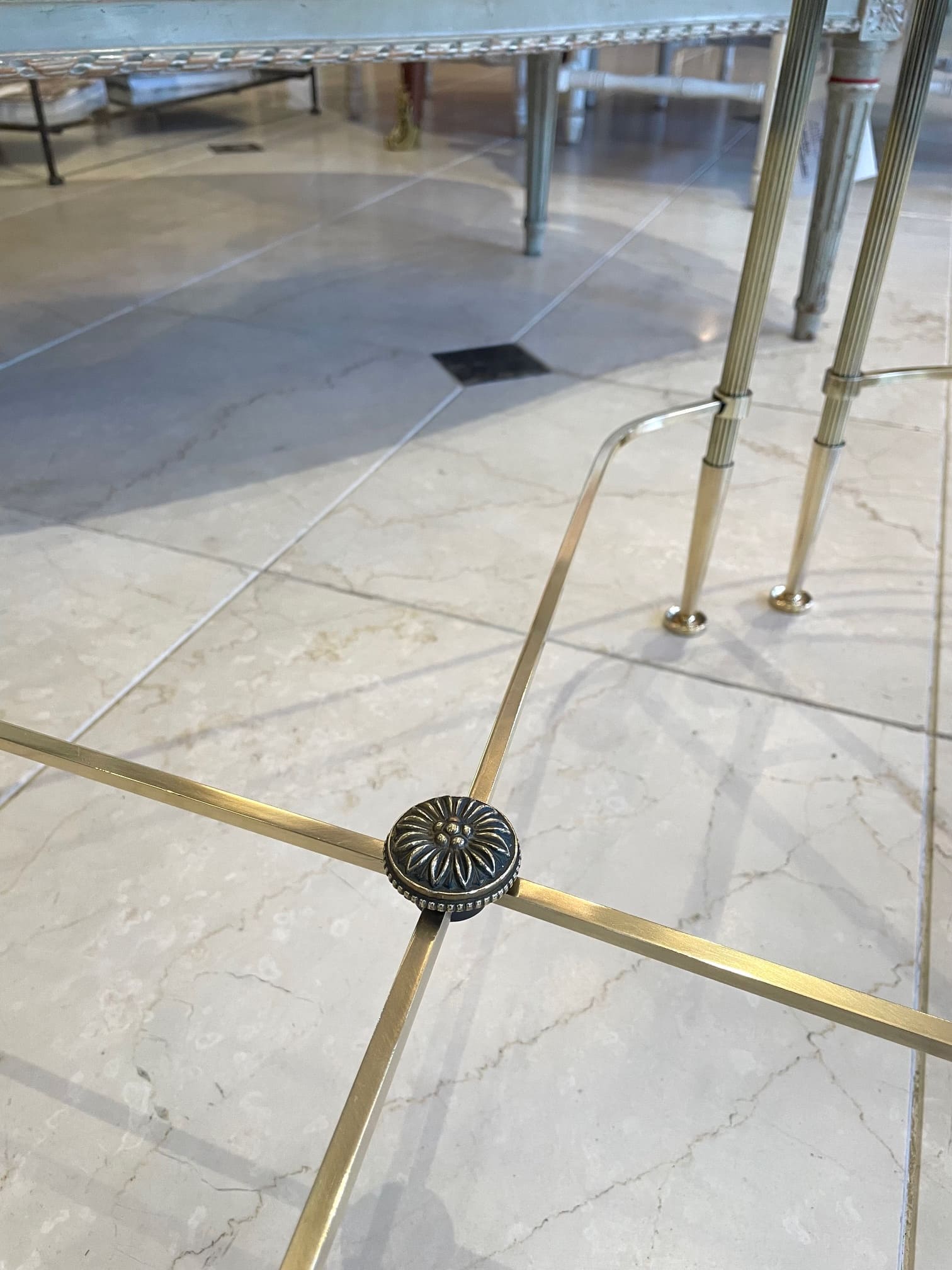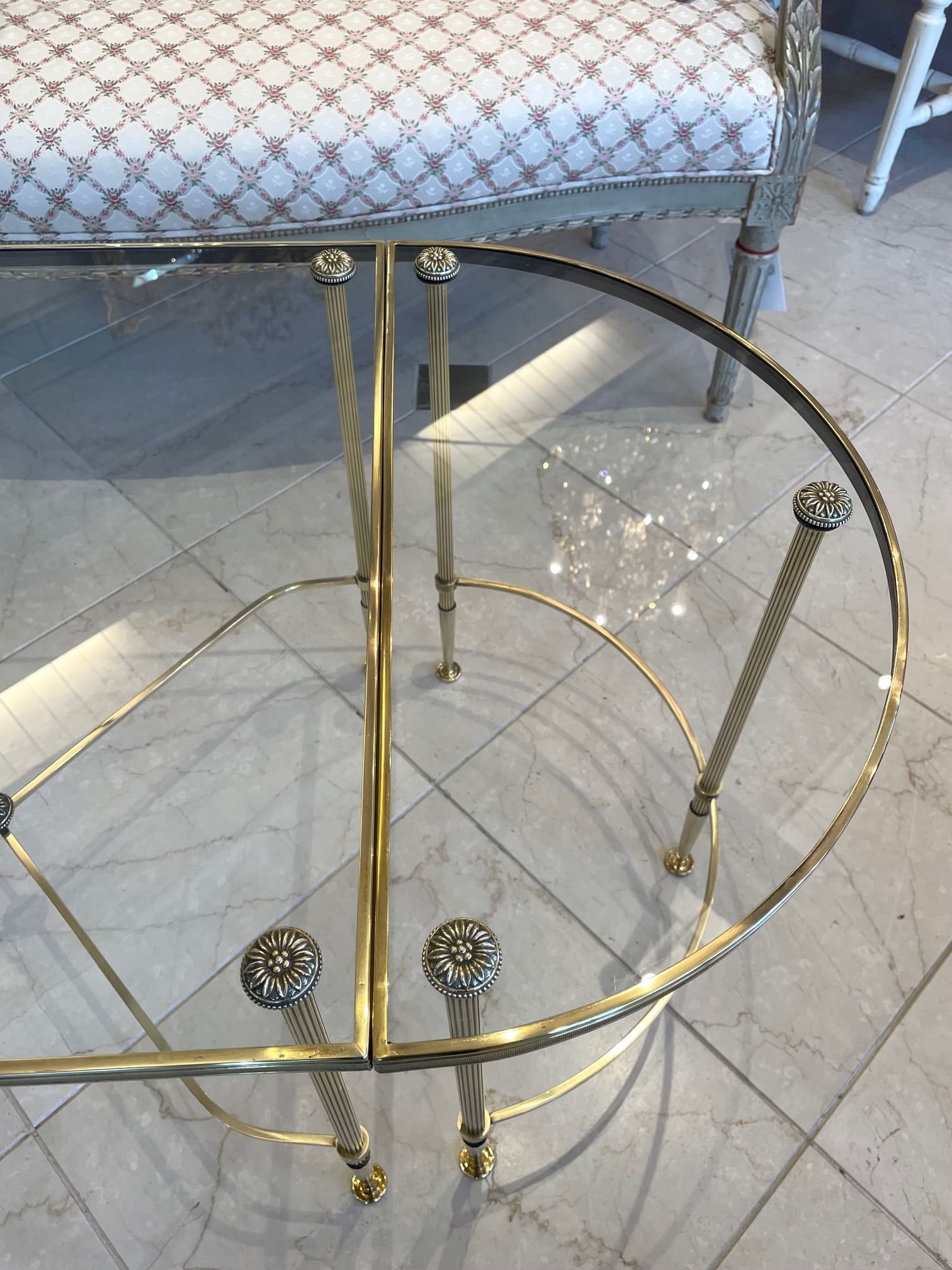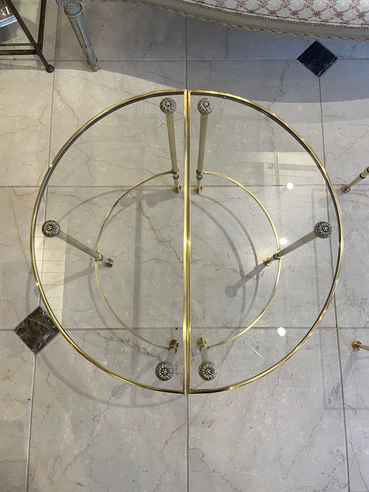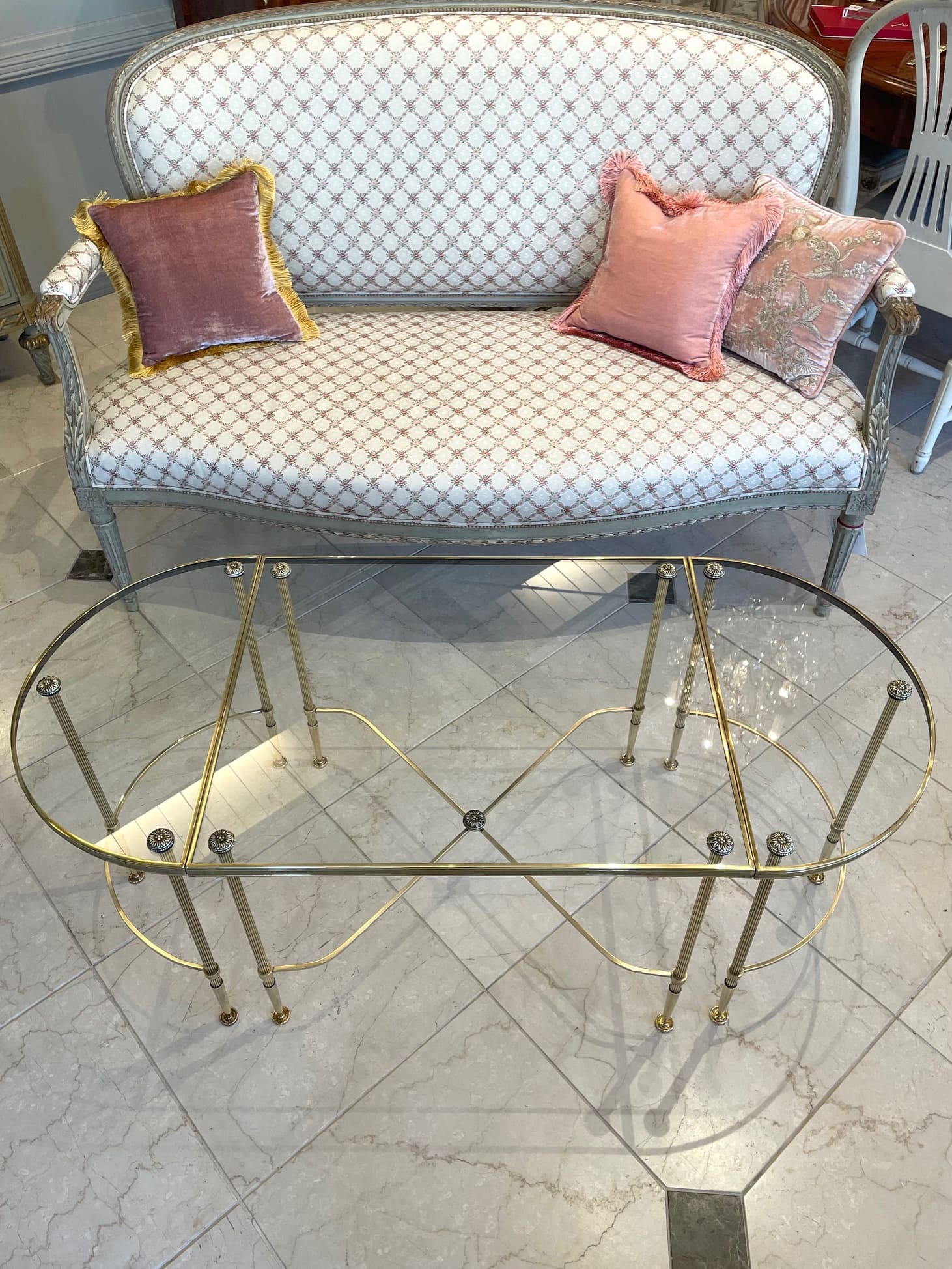 真鍮のフレームにガラスがセットされたスタイリッシュなコーヒーテーブルは、インテリアに拘りのあられる方やお洒落な方々に人気の高いメゾン・バゲスのお品物です。
