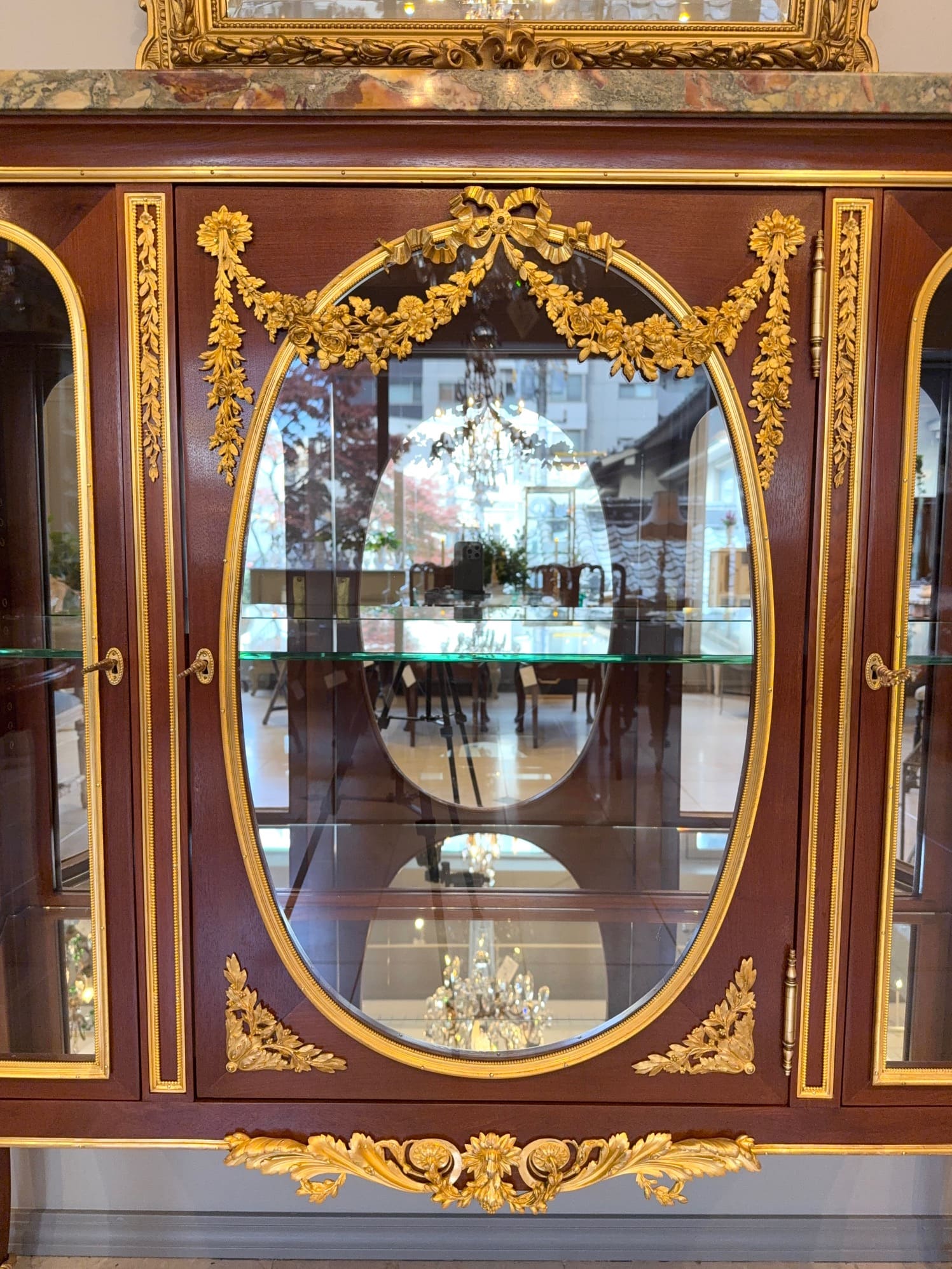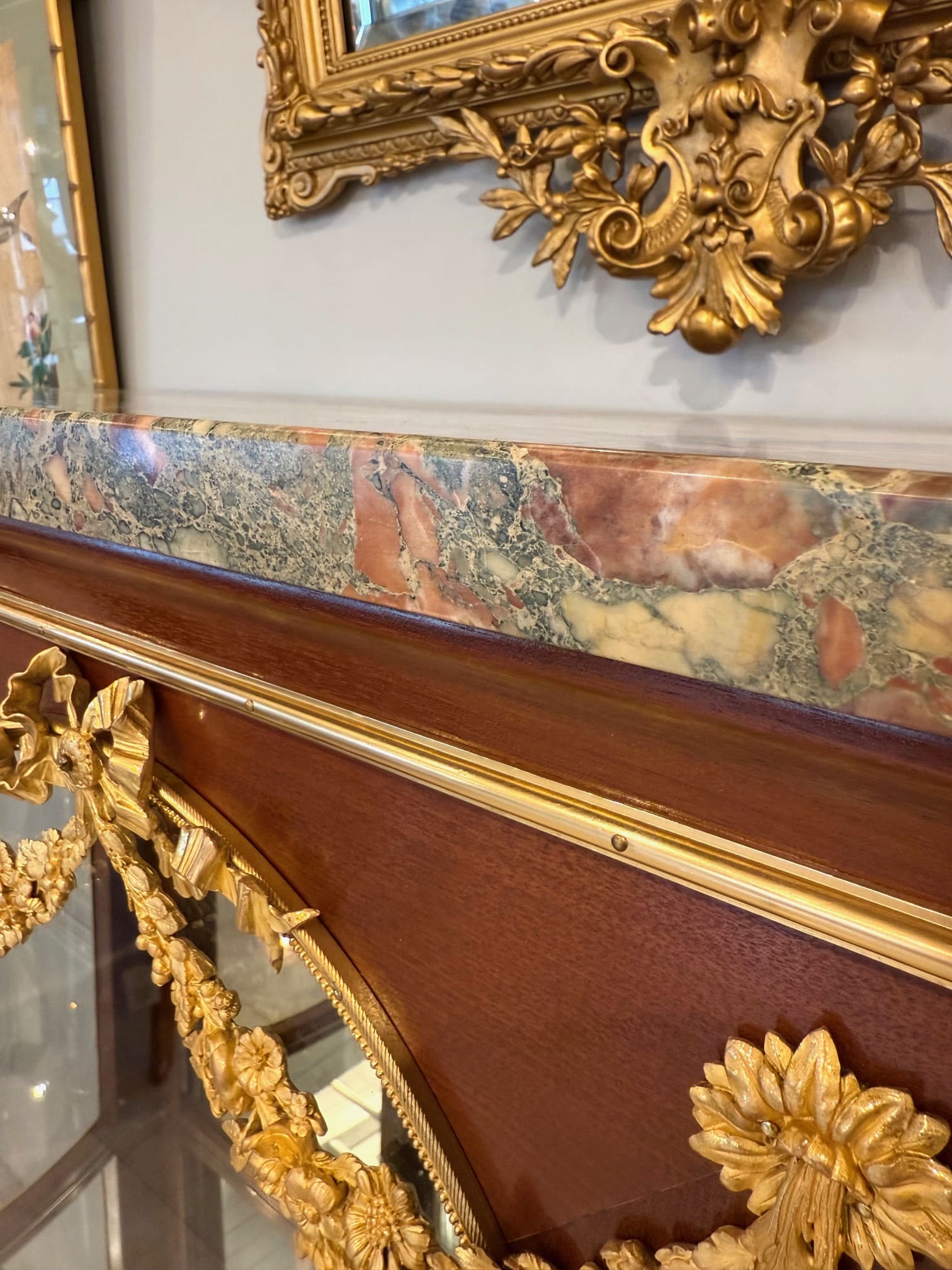 トップの大理石は分厚く高級感が有り、煌びやかなルイ15世スタイルに重厚さをプラスしています。