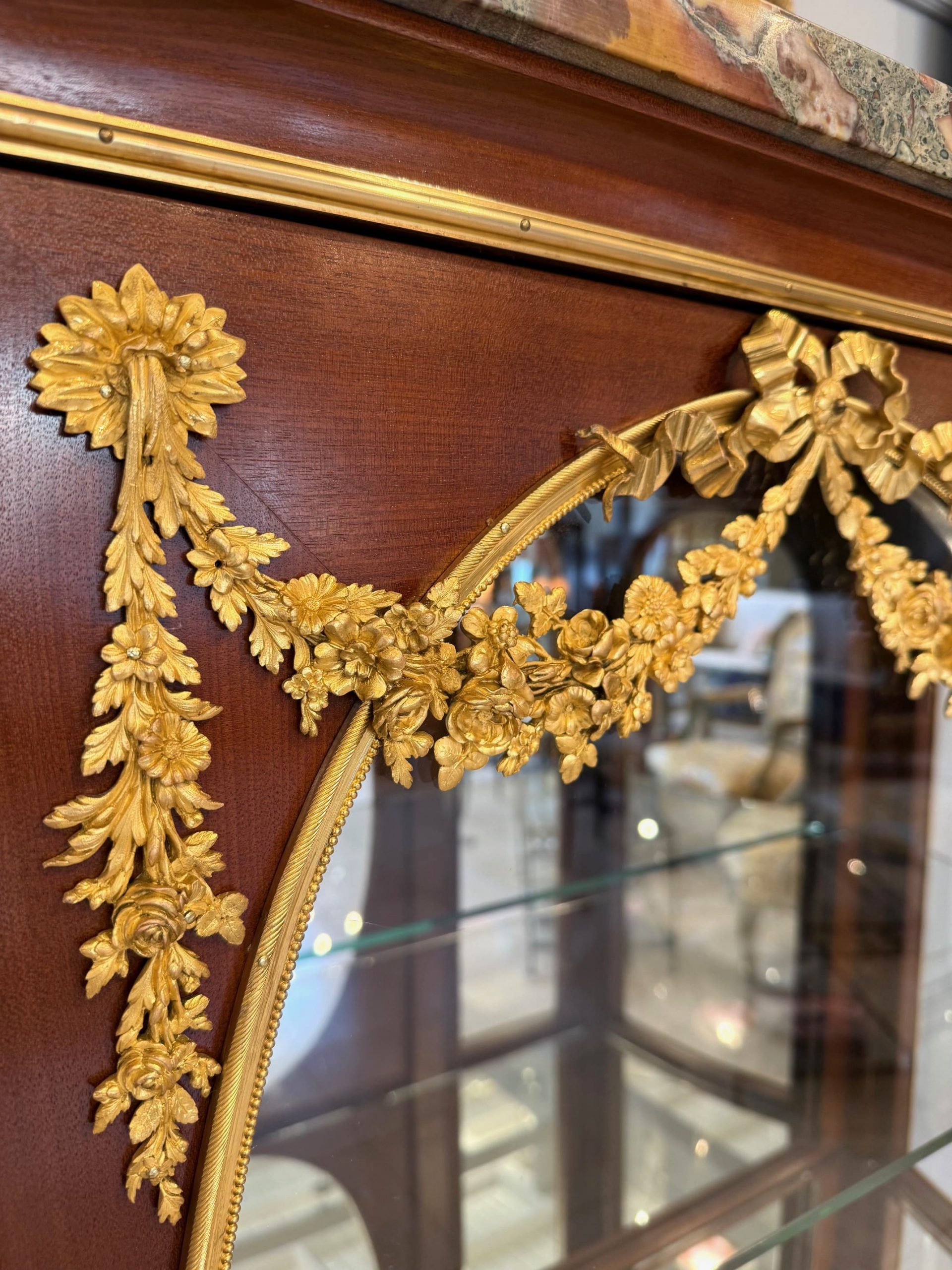 最高級マホガニーが使用され、ブロンズの装飾も繊細で見事です。
