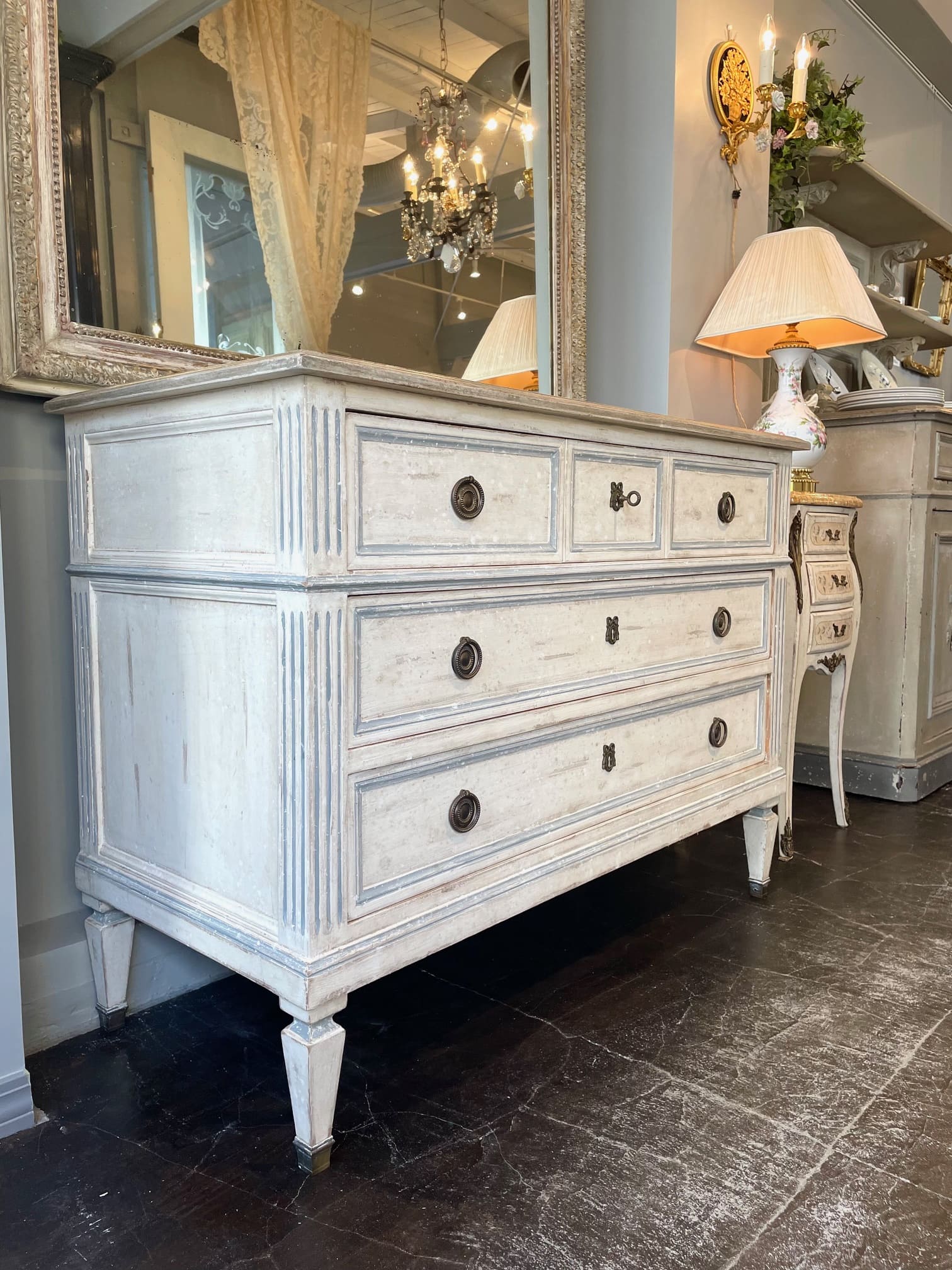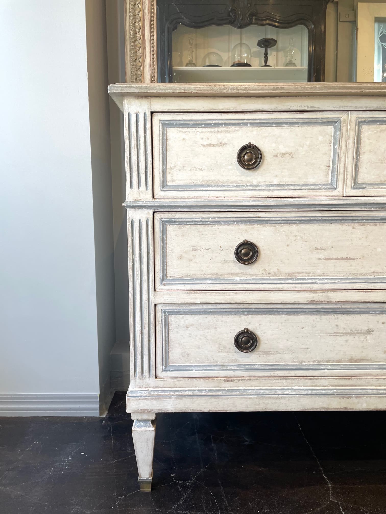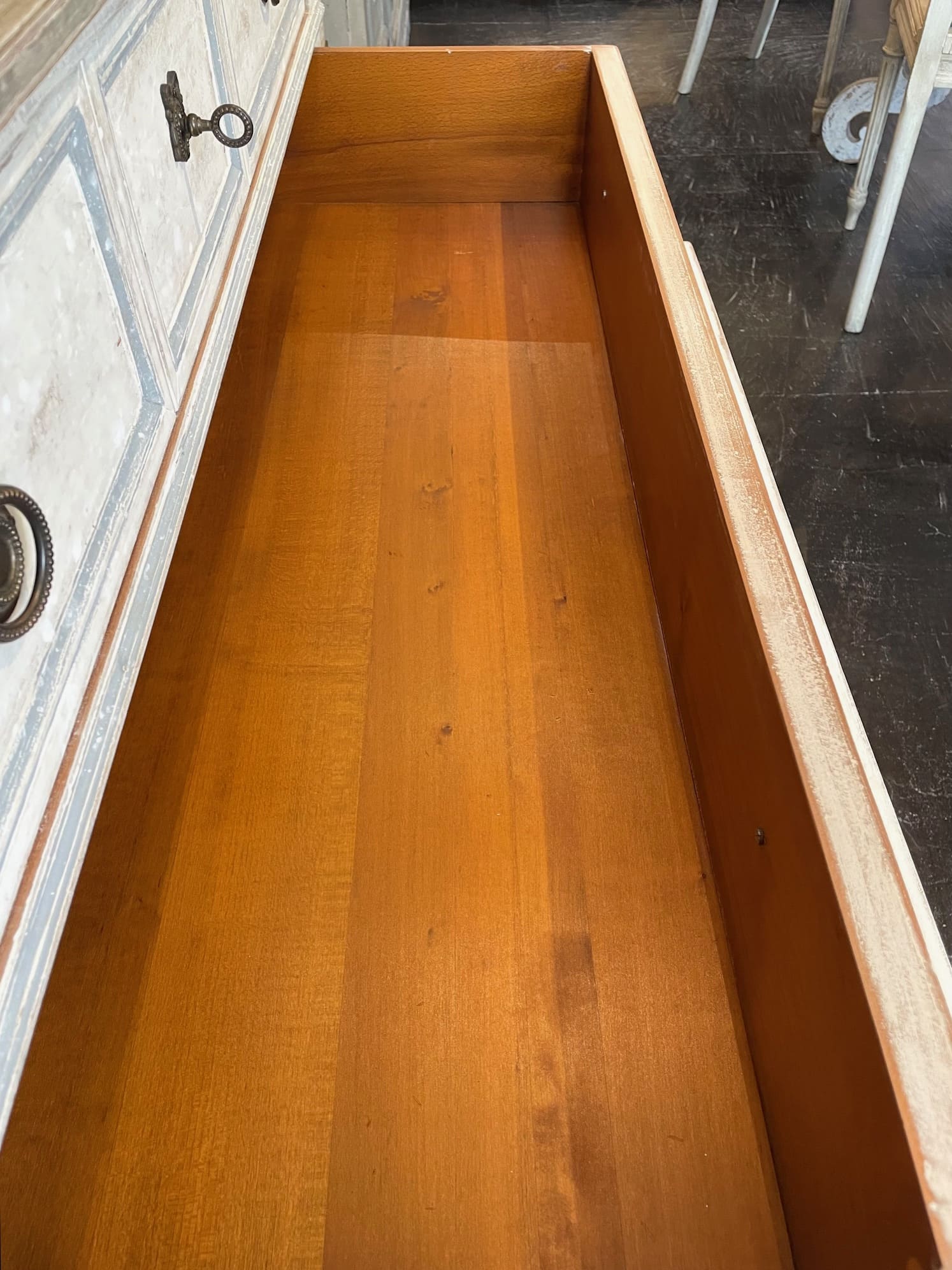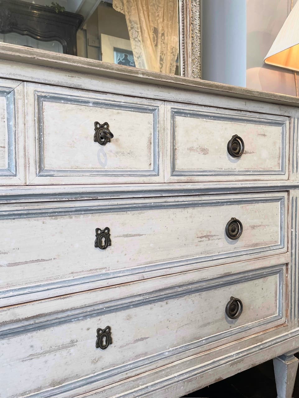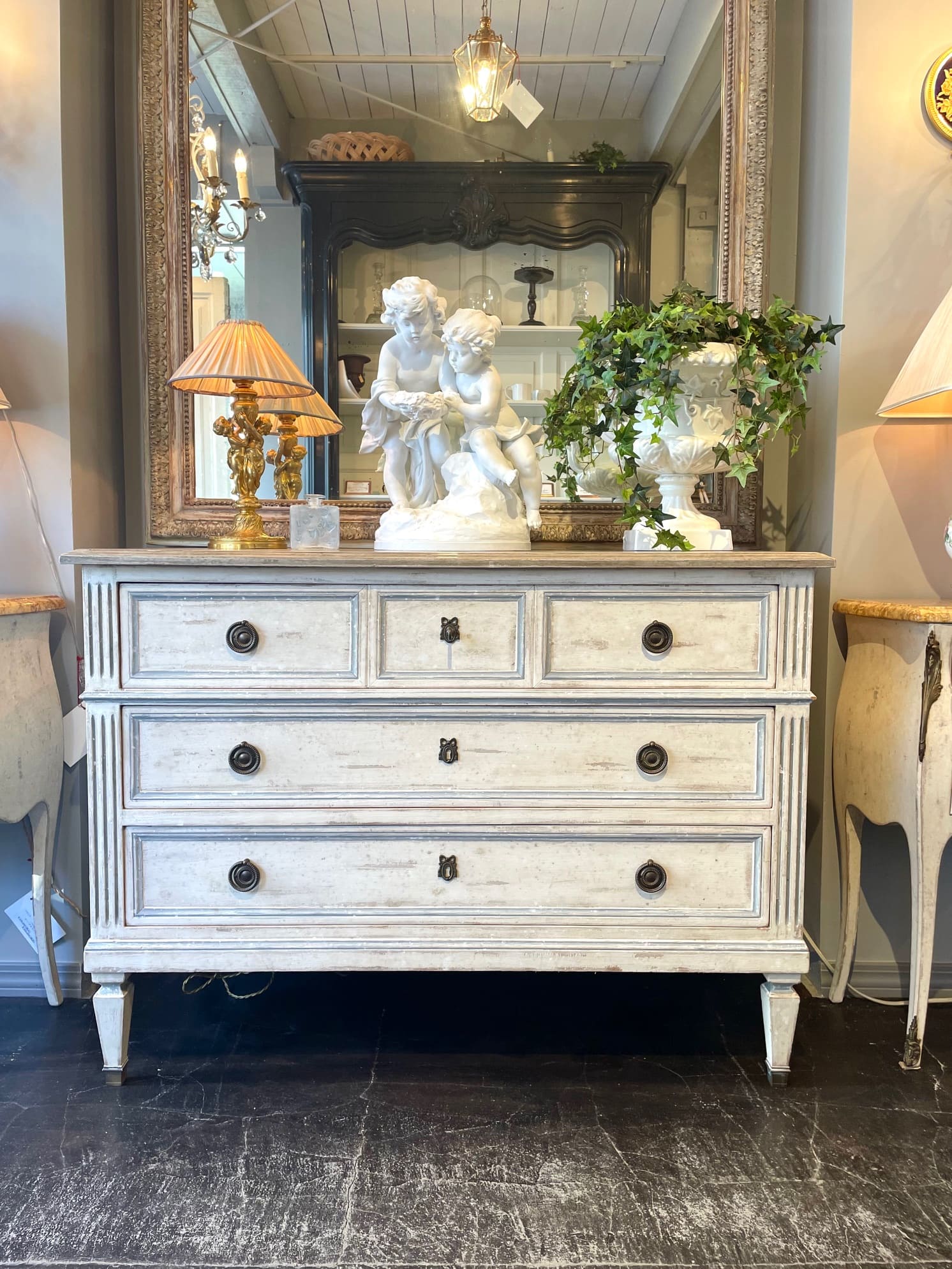 直線を活かした溝彫りや廻り縁の装飾が、シンプルで洗練された印象のチェスト✦˚₊‧