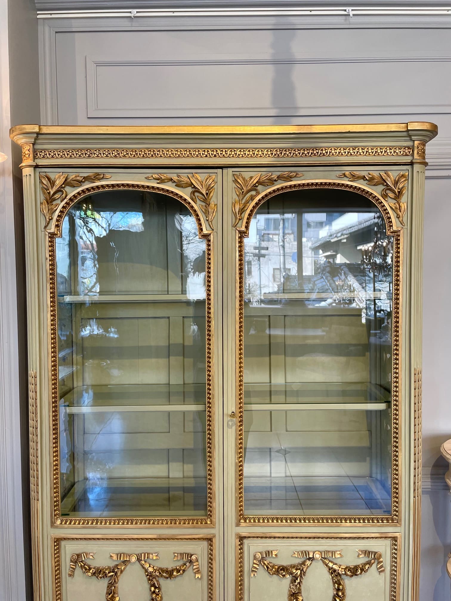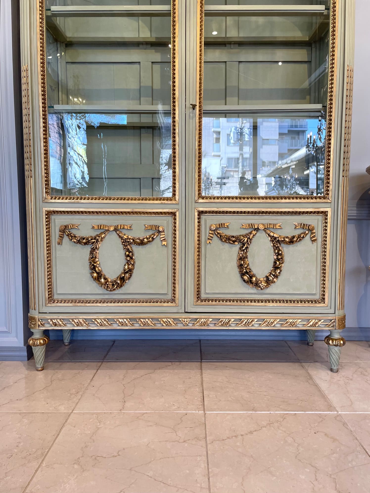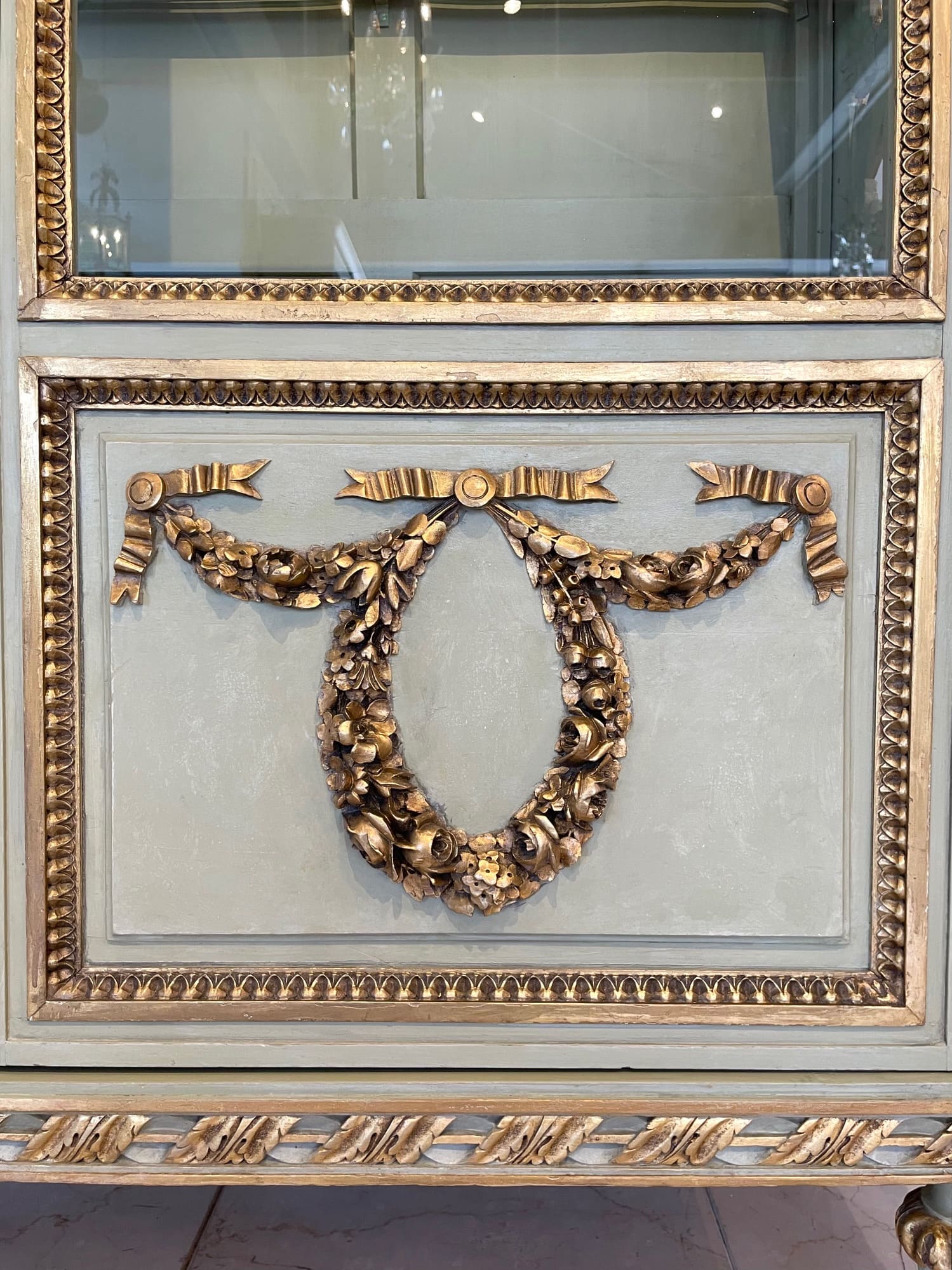 お花のガーランド、リボン、月桂樹、アカンサスの彫刻が美しい、ルイ16世様式のペイントキャビネット・*