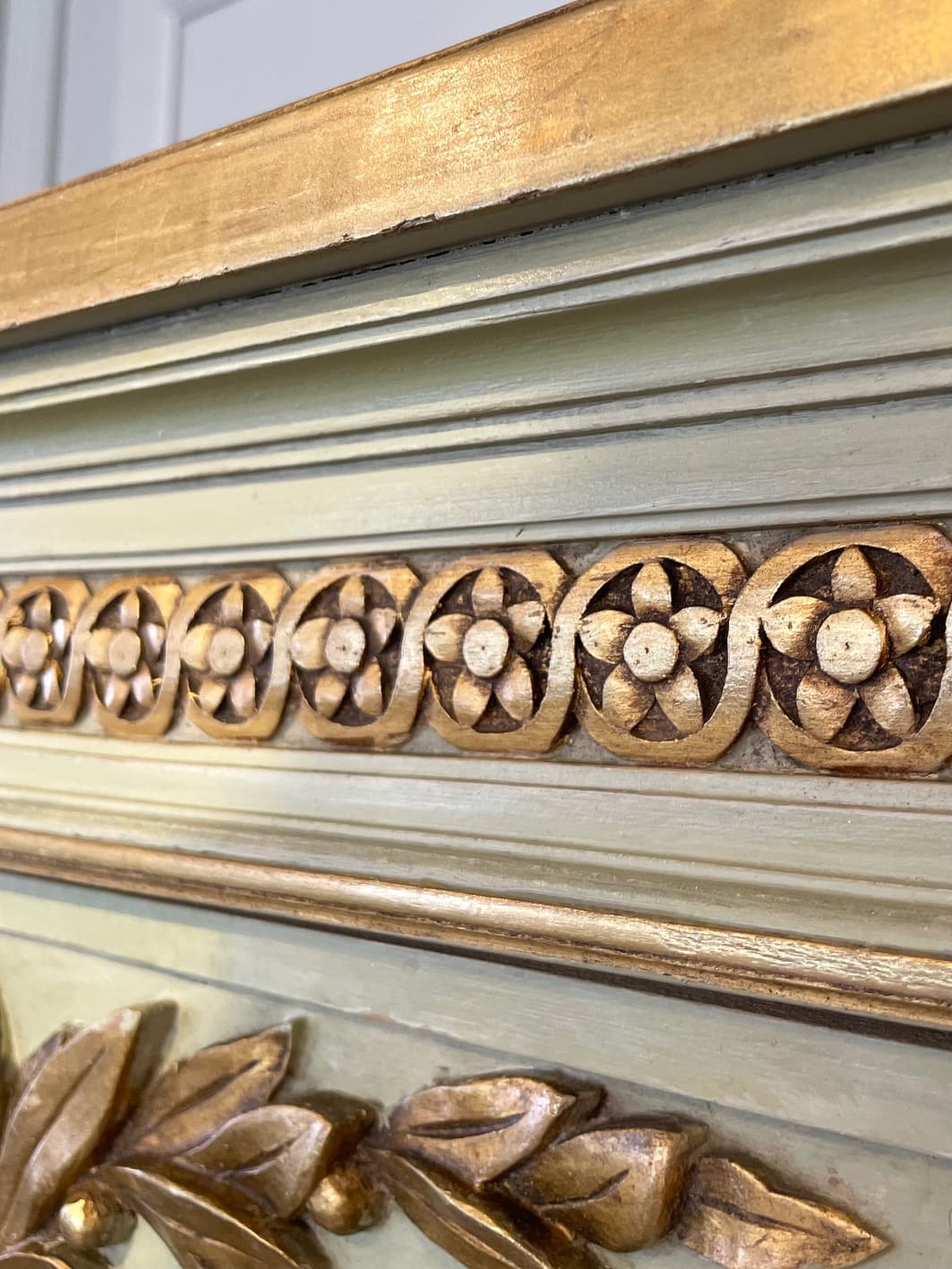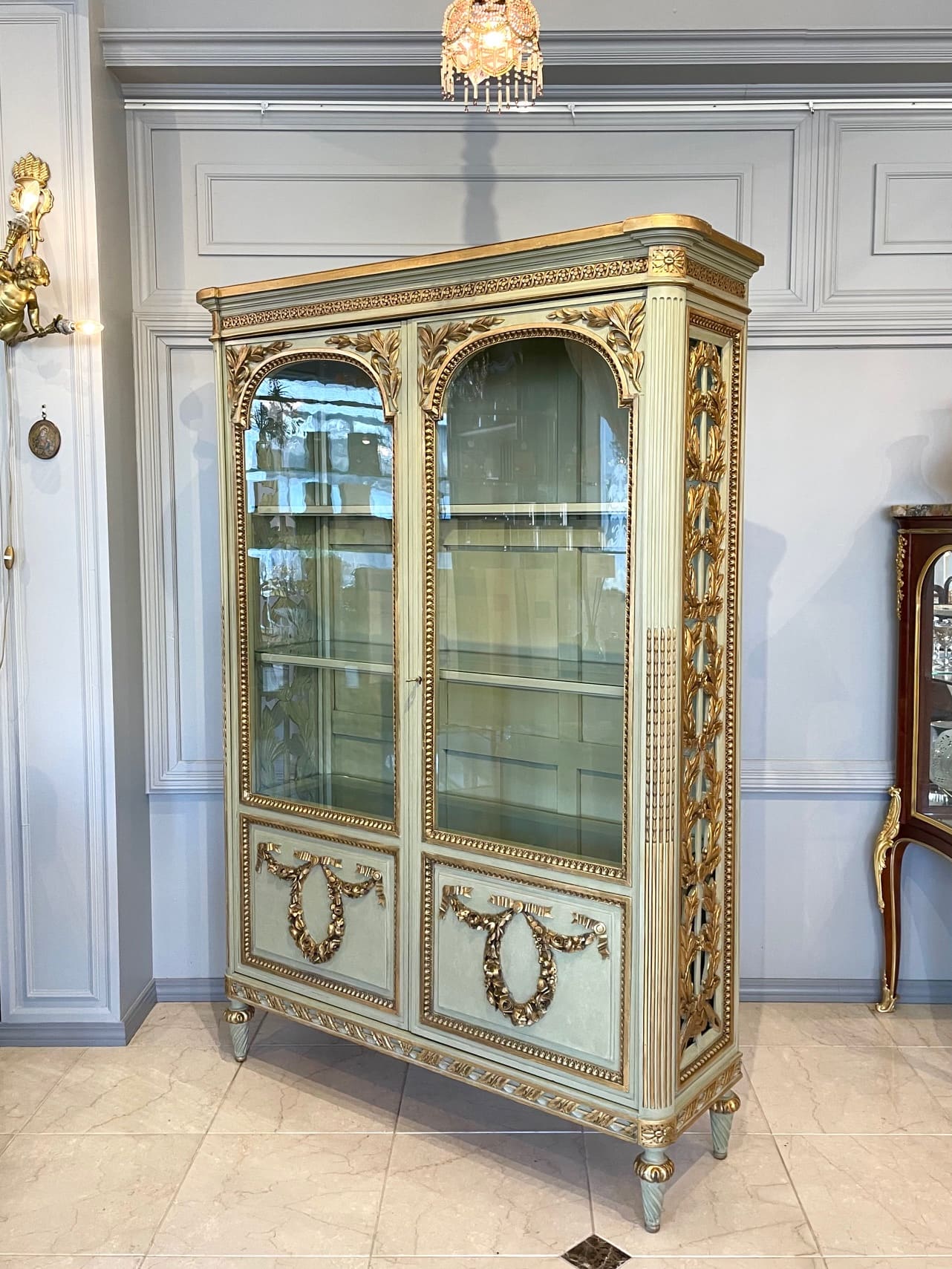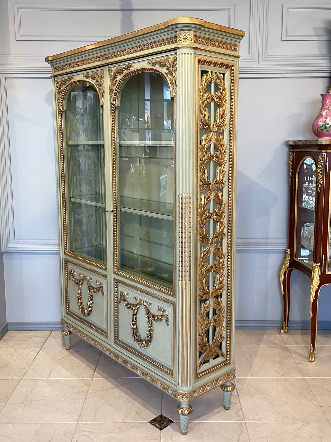 お花のガーランド、リボン、月桂樹、アカンサスの彫刻が美しい、ルイ16世様式のペイントキャビネット・*