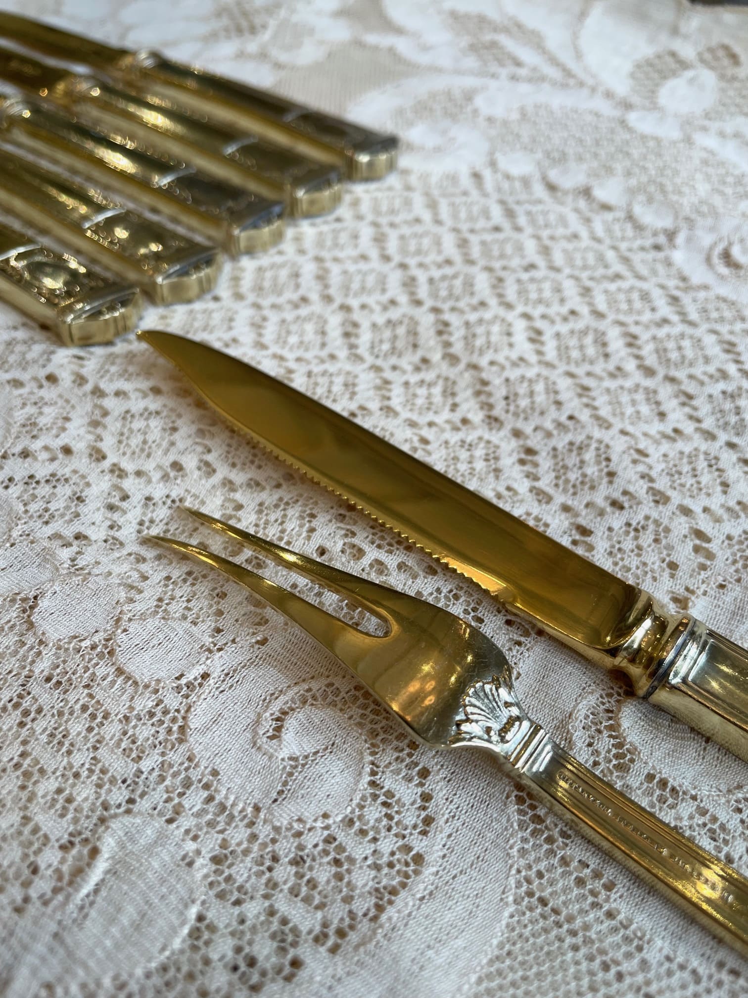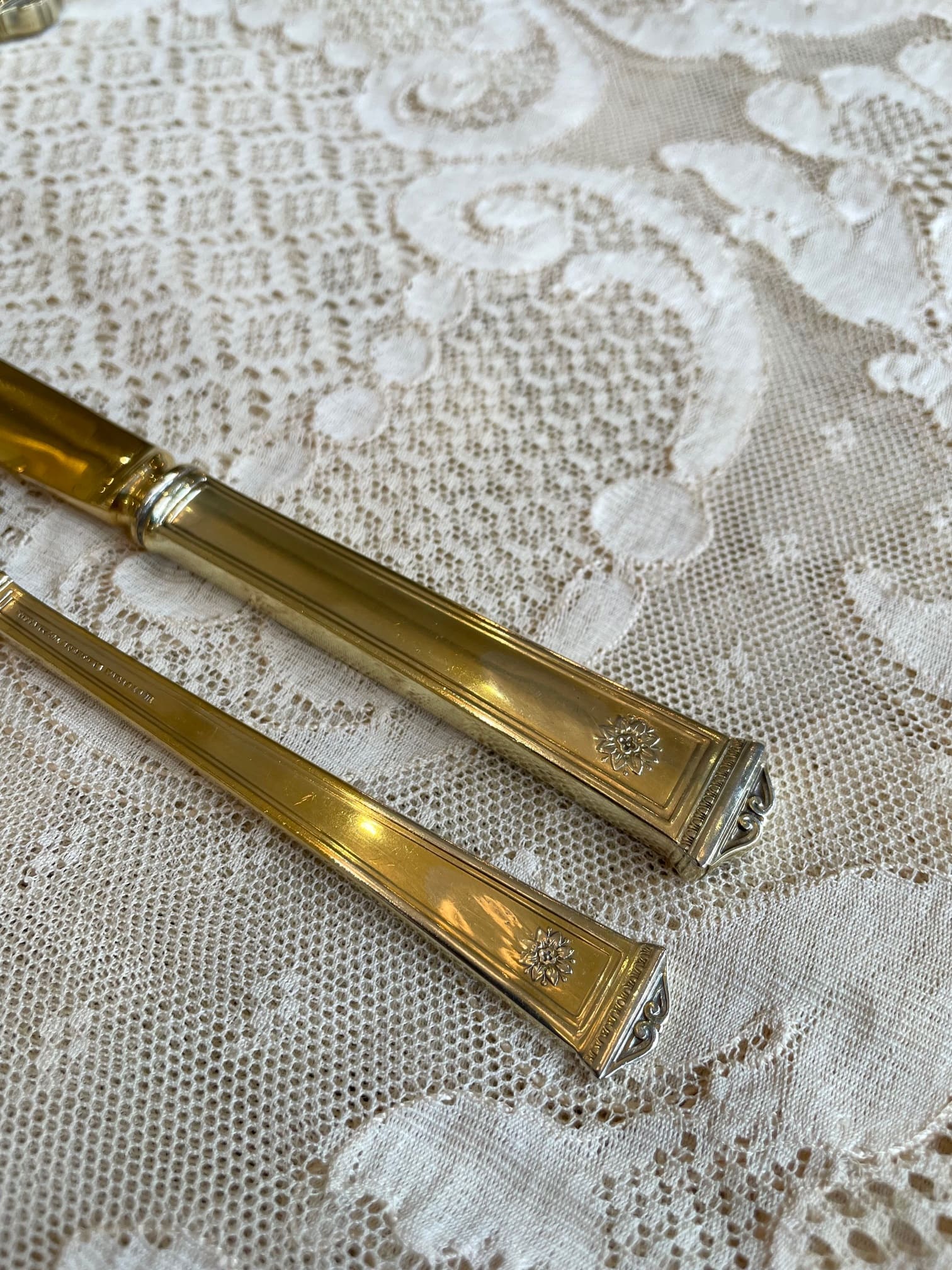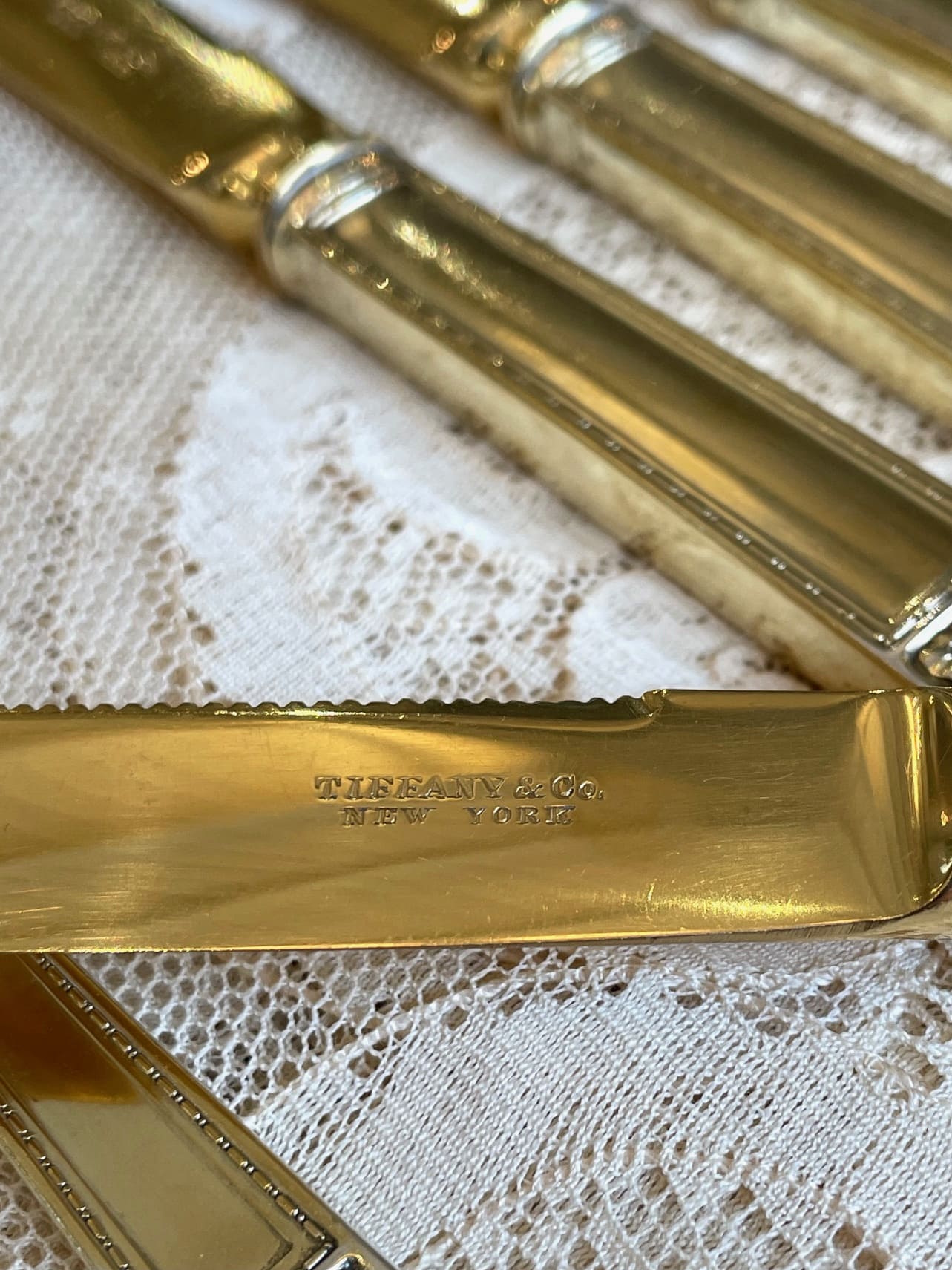 こちらのスターリングシルバーにヴェルメイユが施されたカトラリーセットは