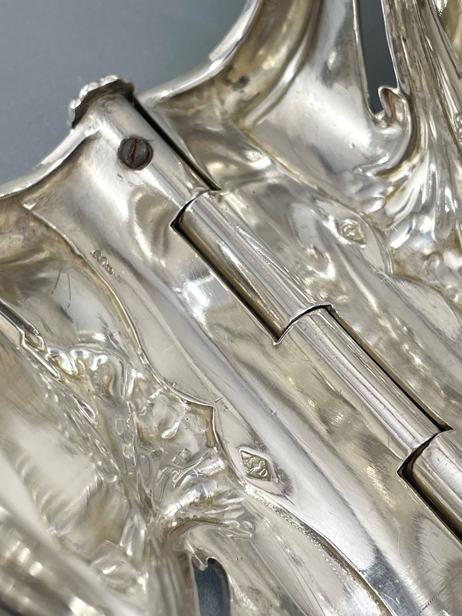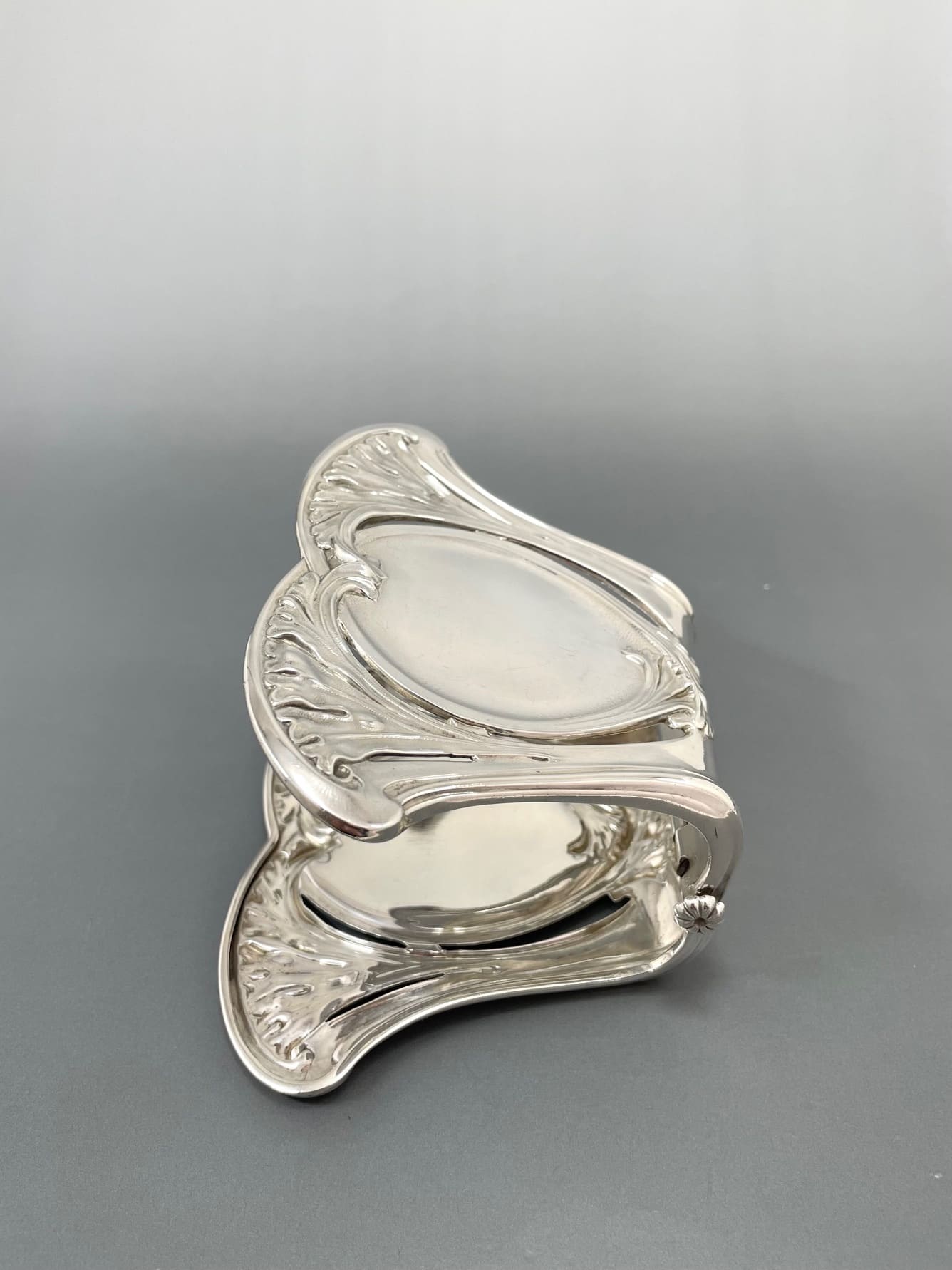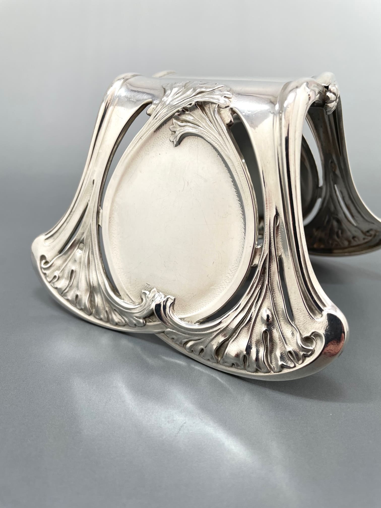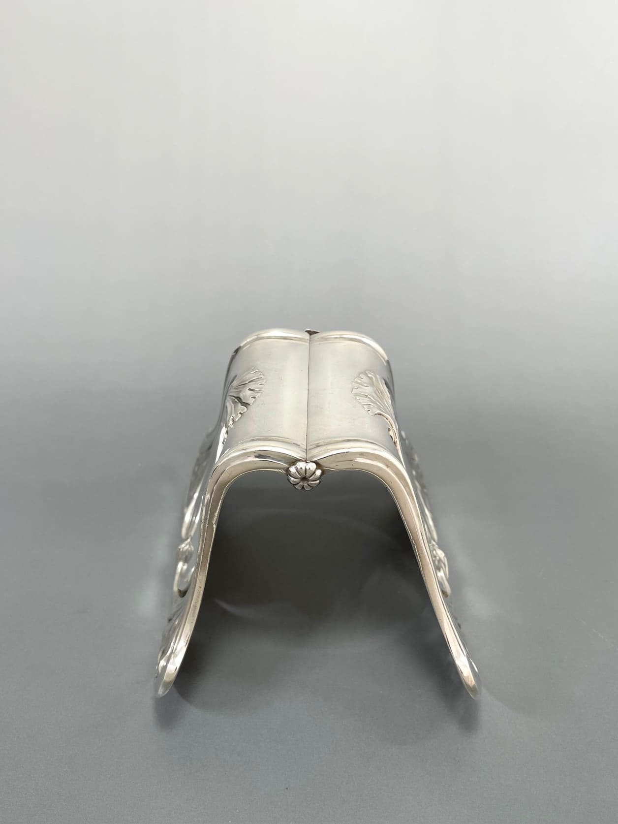 2枚の同じ形状のシルバーを蝶番で繋ぎ合わせるスタイルは、1883年から1911年までパリで活躍したオルフェーヴル、アルフォンス・デュバンによって発明されました。