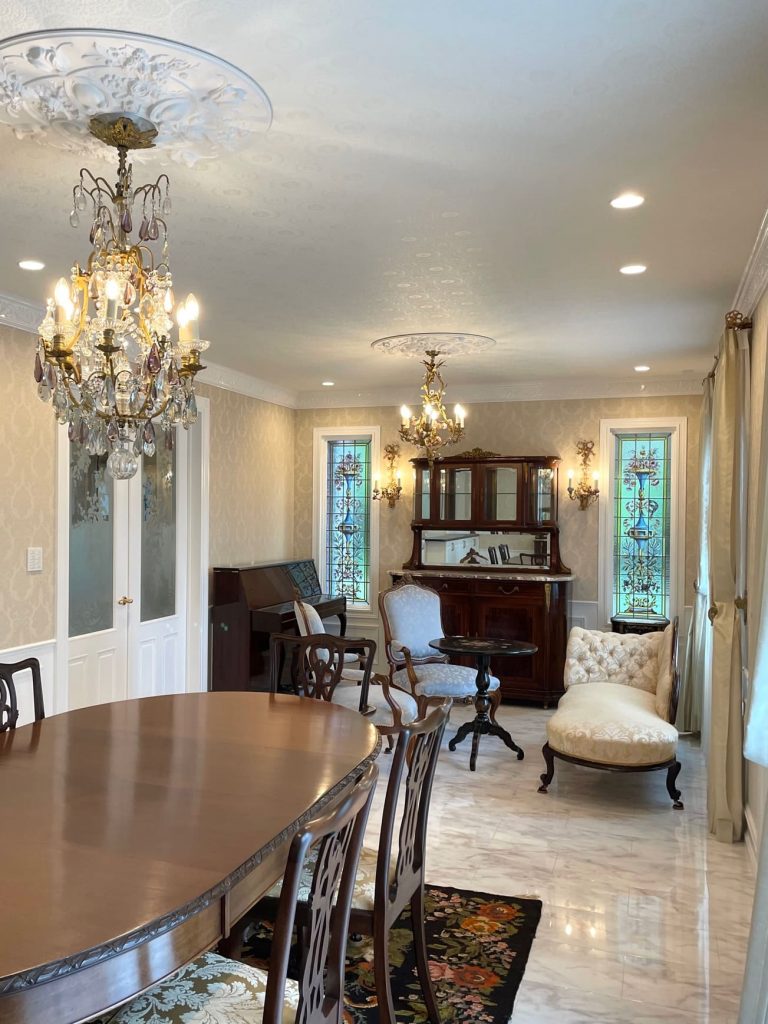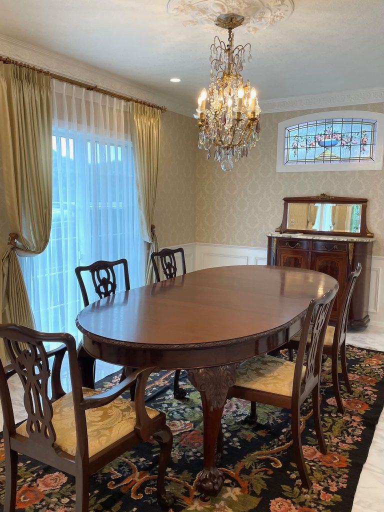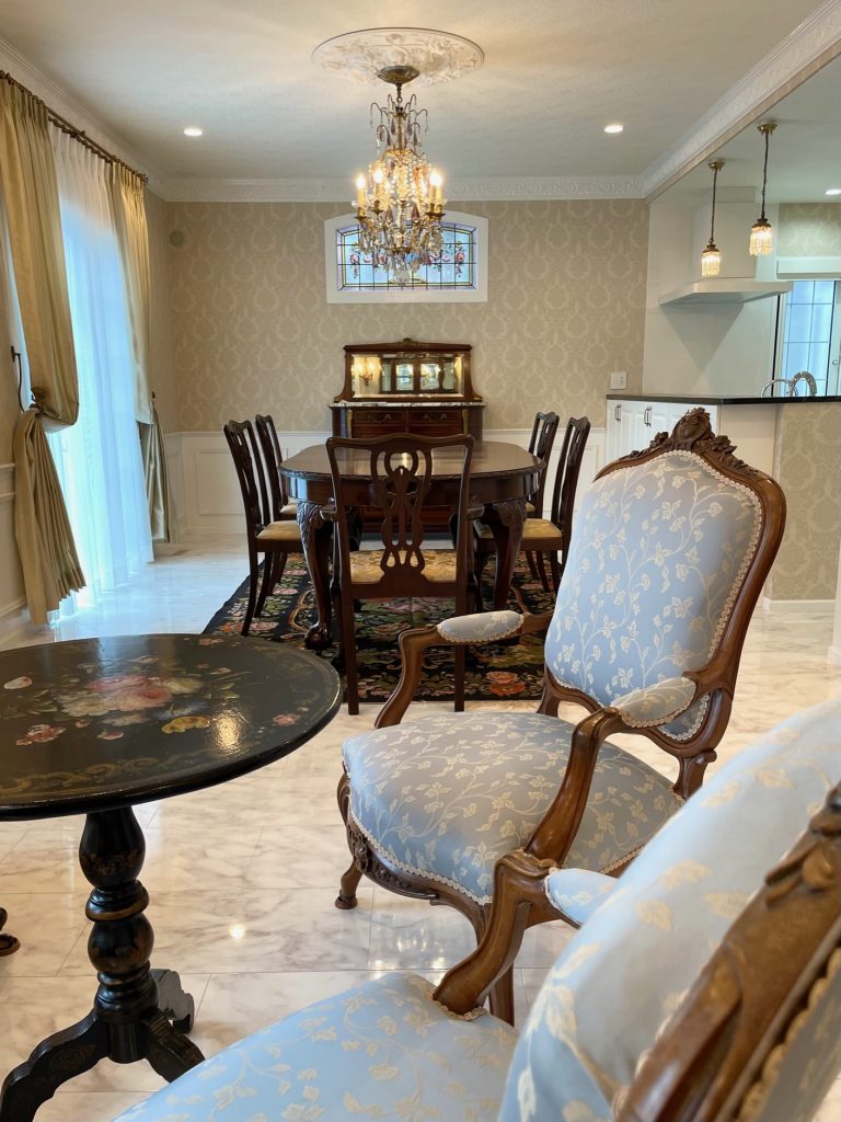 イギリスとフランスのアンティークどちらもお好きでいらっしゃるので、重厚さと華やかさを兼ね備えたインテリアとなっております。