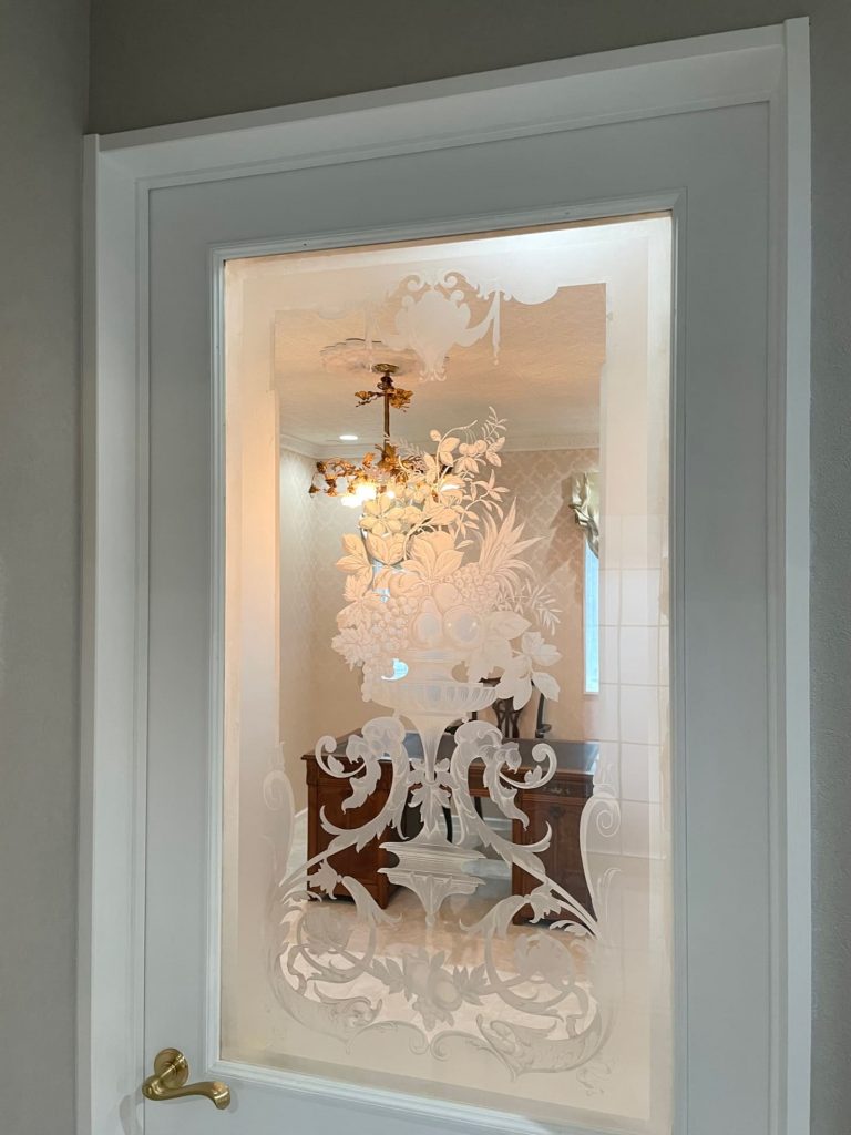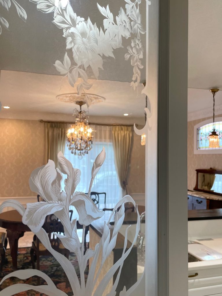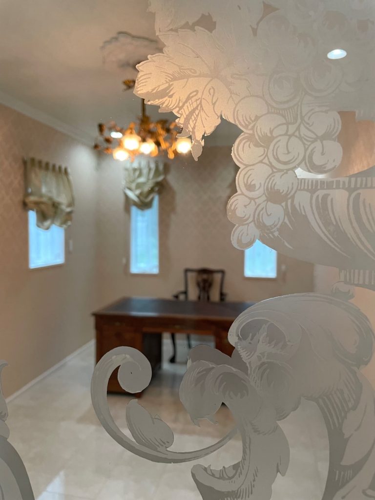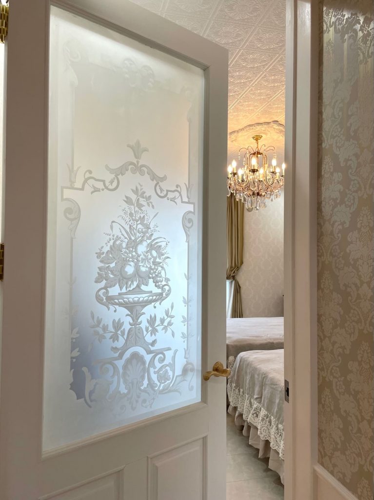 珍しい全面磨りガラスのエッチングドアの先は・・・