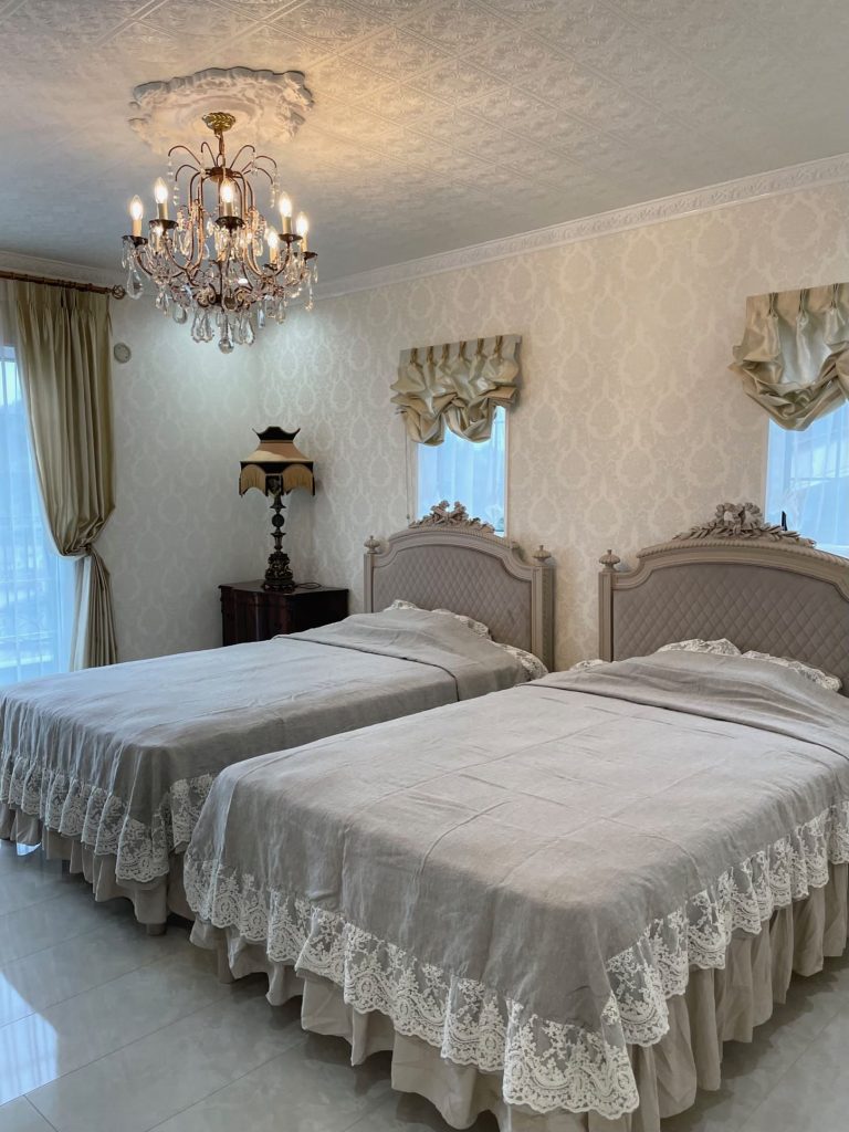 ベッドが二つ必要だったマダムのご希望を叶える為、フットボードもヘッドボードとして使用いたしました。